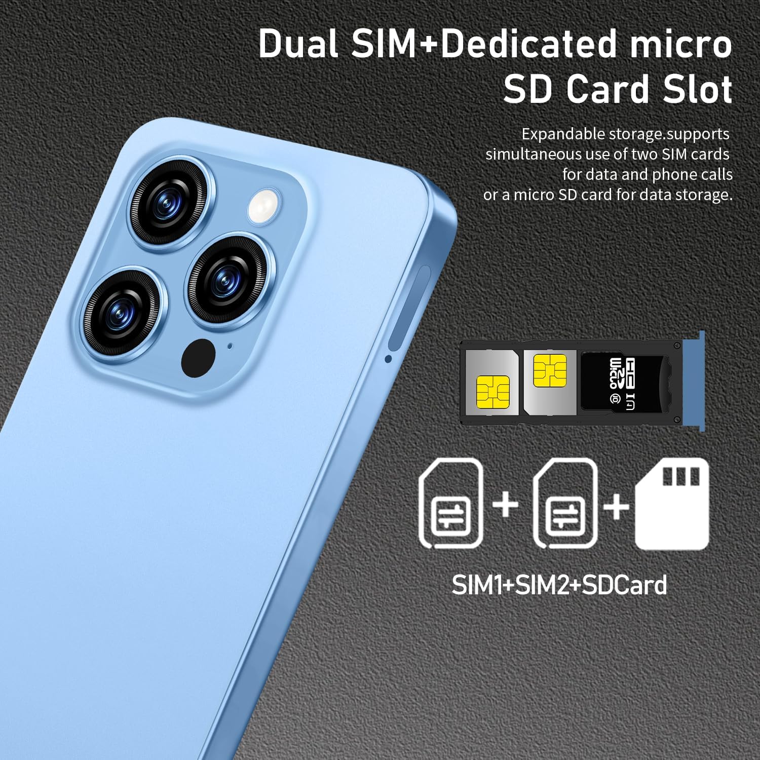 16 PROMAX Unlocked Phone, 8+256GB Smartphone, Android 13.0, Long Battery Life 7000mAh, 6.99“ HD Screen with 128GB Memory Card, Face ID/Dual SIM/5G/Fingerprint Lock/Photos/GPS (Blue)