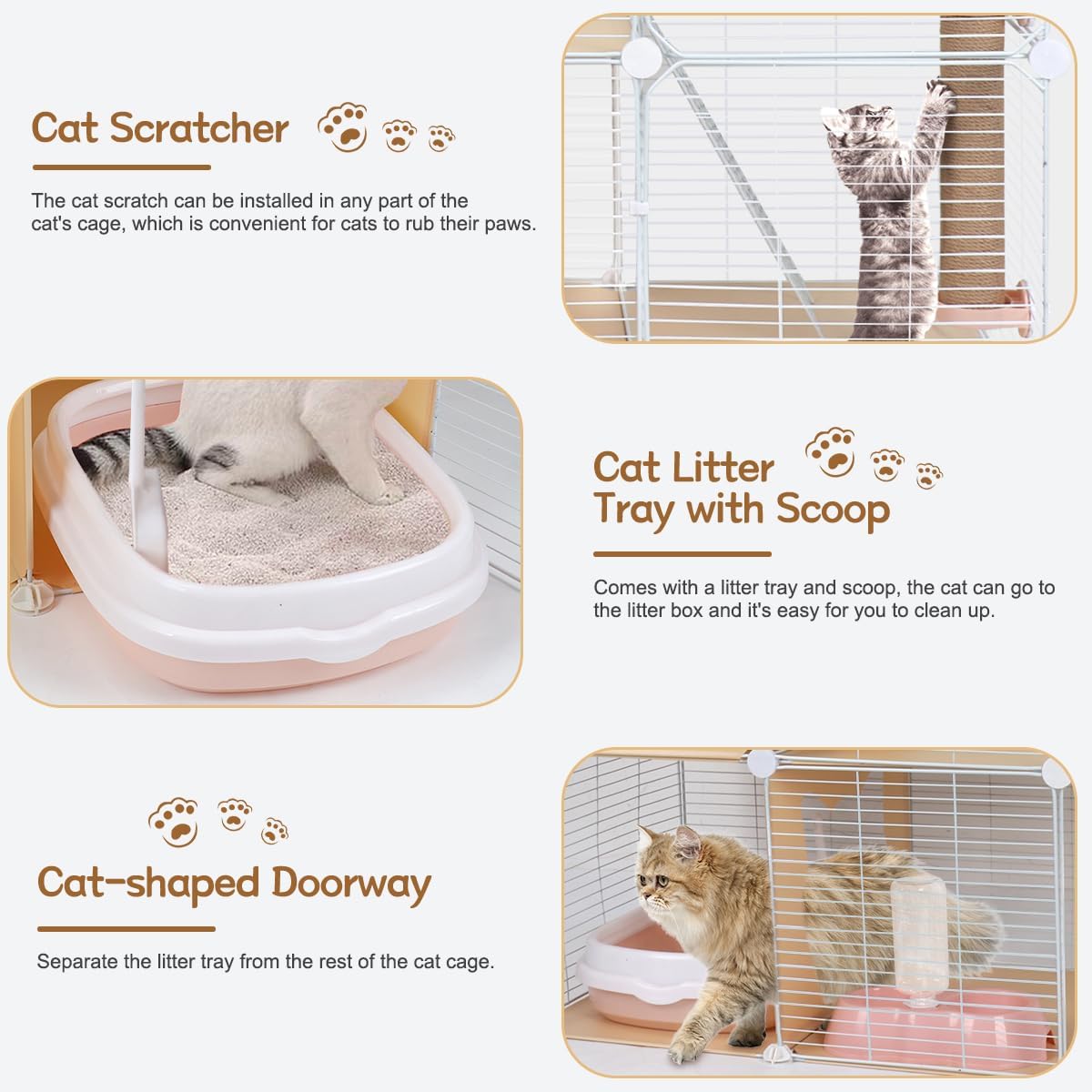 【Ventilation and Convenience】 Our cat playpen enclosure is surrounded by metal wire panels, allowing you to interact with your pet from any angle at any time. The spacious interior keeps your pets comfortable and happy as it allows them to rest, play and potty inside.