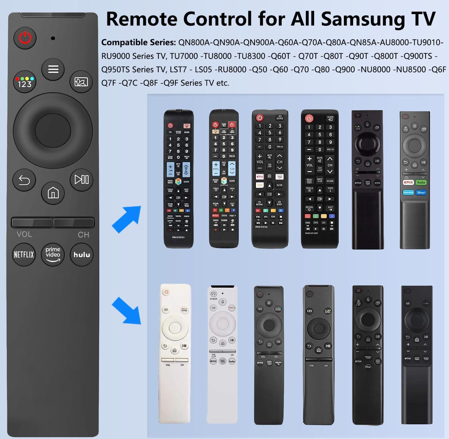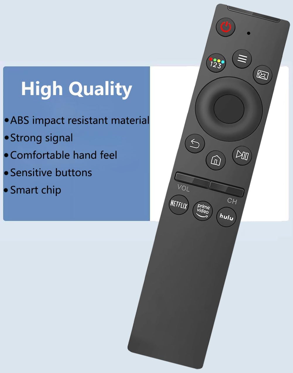 Universal Compatibility: The replacement remote for Samsung Smart-TV, compatible with Samsung 4K Ultra HD SUHD Crystal HDR OLED LED LCD QLED UHD Curved TVs and more.Compatible Remote Models: It is applicable for your Samsung Smart Universal Controls BN59-01312A, BN59-01312G, BN59-01301A, BN59-01259B, BN59-01330A, BN59-01260A, BN59-01267A, BN59-01292A, BN59-01298H, BN59-01241A, BN59-01178W, BN59-01289A, BN59-01266A, BN59-01220E, BN59-01199F and others.