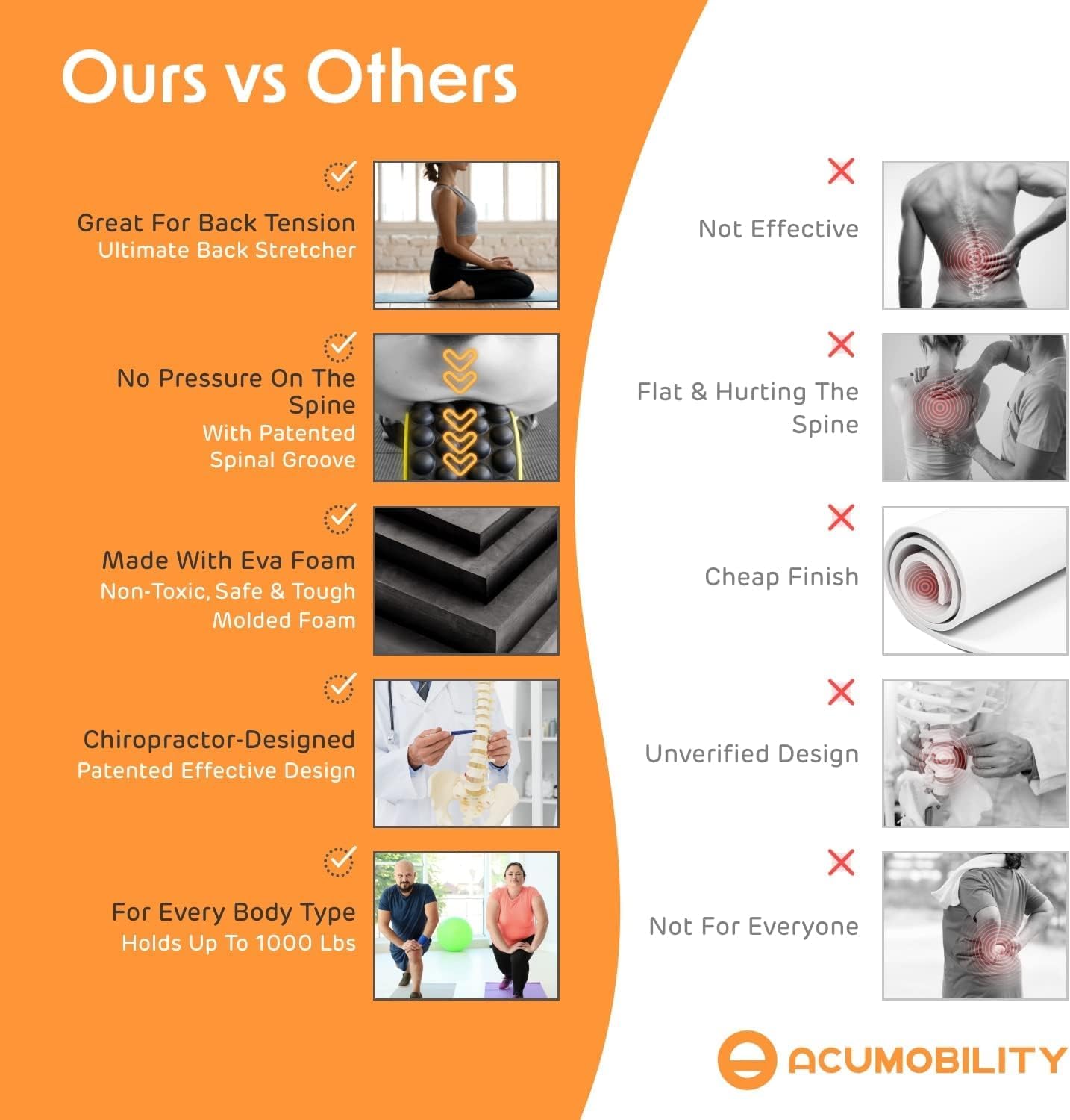 The Only Chiropractor Designed Back Roller – No other back roller can improve your posture or possibly help you live better with back pains than Acumobility Foam Roller!