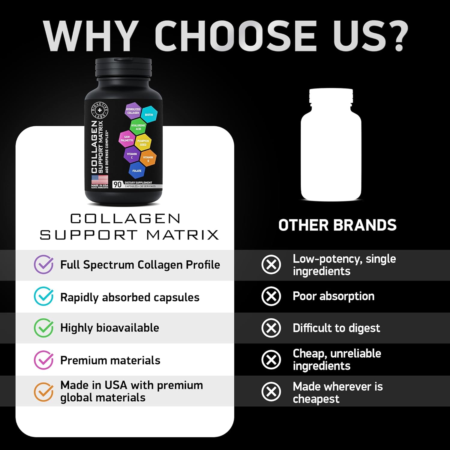Age Defense Beauty Collagen Matrix – 2,000mg Multi Collagen Biotin Keratin Hyaluronic Acid Saw Palmetto Vitamin C Supplement Complex – DHT Blocker for Men & Women for Hair Growth – 90 Gluten-Free Caps
