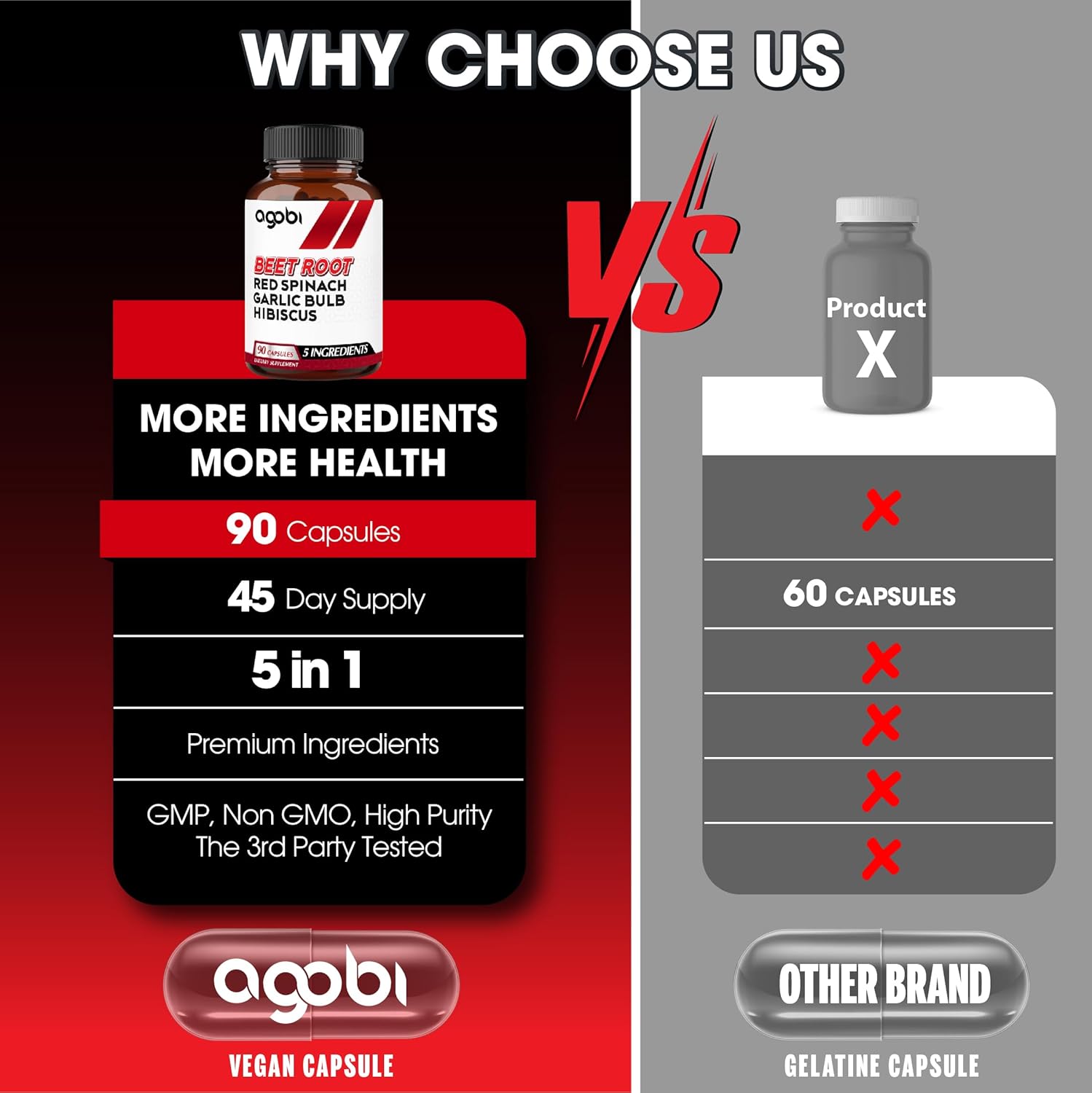 agobi 5in1 Beet Root Capsules – Added with Red Spinach, Organic Garlic Bulb, Hibiscus & Black Pepper – Support for Energy Production, Immune System & Digestive Health – 90 Vegan Capsules