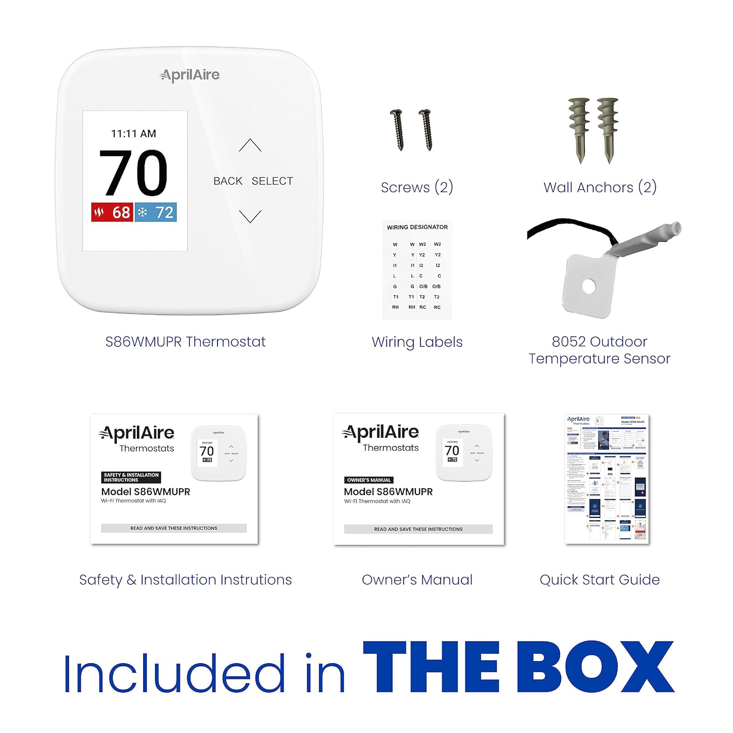 AprilAire S86WMUPR Wi-Fi Programmable Thermostat, Multi-Stage Universal with IAQ Control, 2H/2C Heat/Cool Stages or 4H/2C Heat Pump Stages