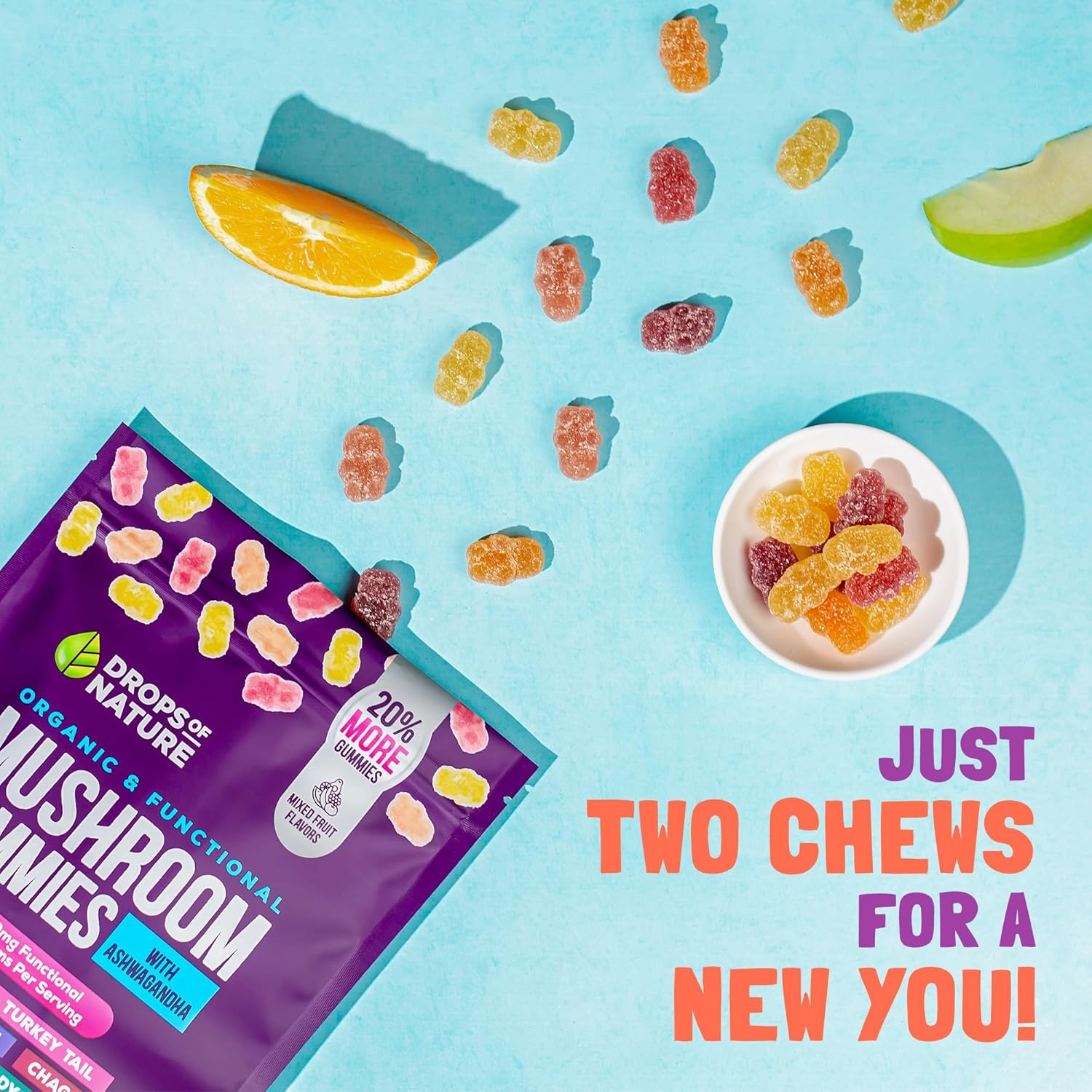 Delicious Berry Flavor: Offers a natural mixed fruit berry flavor; makes daily supplementation enjoyable; convenient and tasty way to incorporate mushrooms and ashwagandha into your routine; enhances wellness journey with great taste and vital nutrients