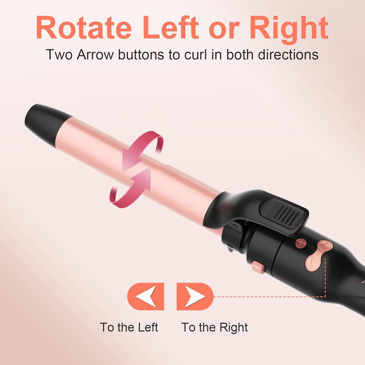 Safe & Convenient: Our versatile automatic curling iron was equipped with dual voltage(100-240V AC), our self rotating curling wand can let you effortlessly create all your travel hairstyles on the go. And 1-hour automatic shut-off timer helps prevent potential hazards caused by forgetting to turn off the device