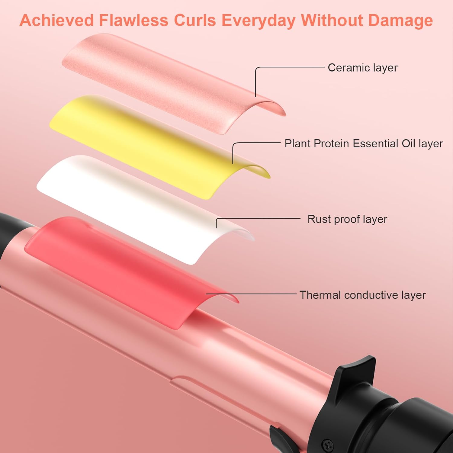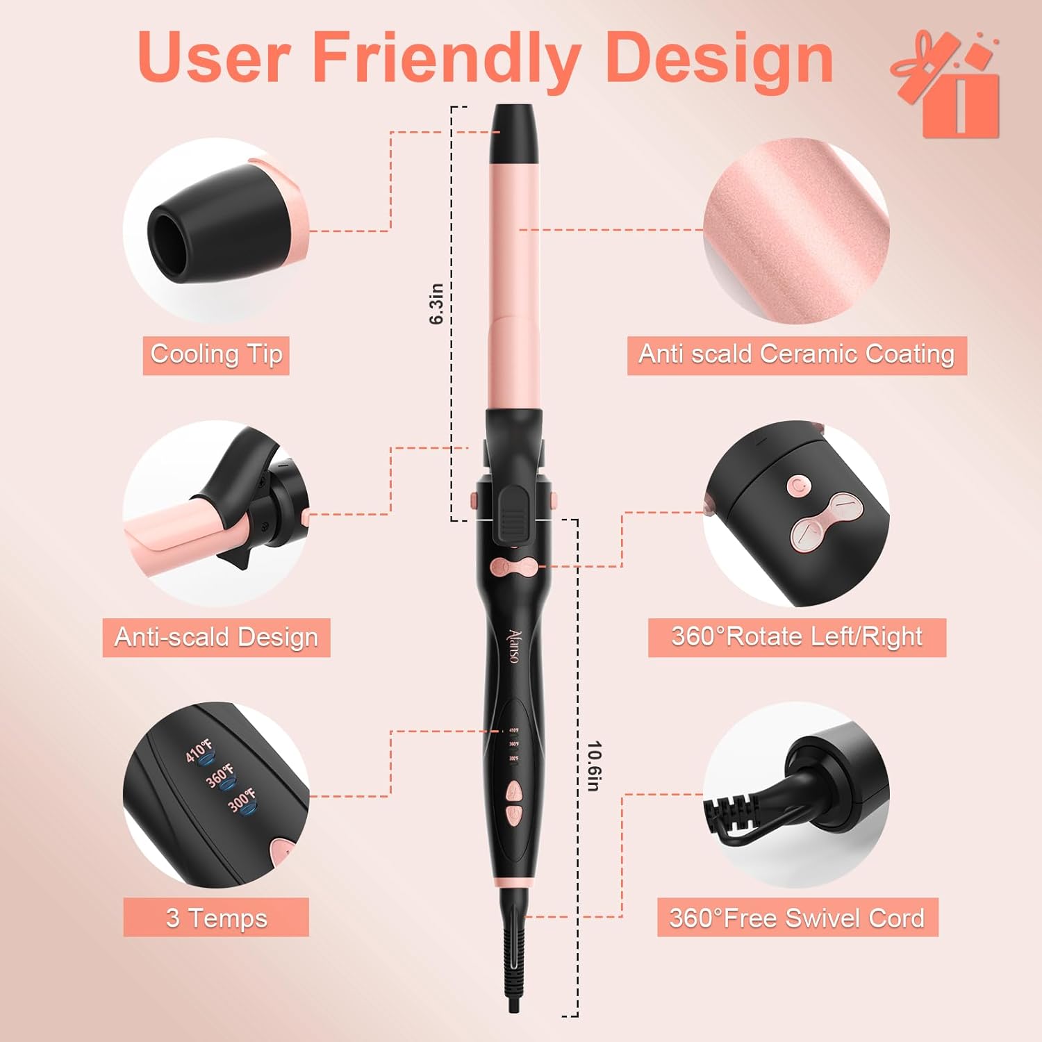 Instant Heating & 3 Temp Settings: Our wand curling iron adopts NTC intelligent technology, providing consistent temperature control for healthy, lasting curls while minimized heat exposure. 3 precise heat settings from 300℉ to 410℉ ensure your safe, personalized styling experience. (To get better curling results, we suggest 60s preheating time before use)