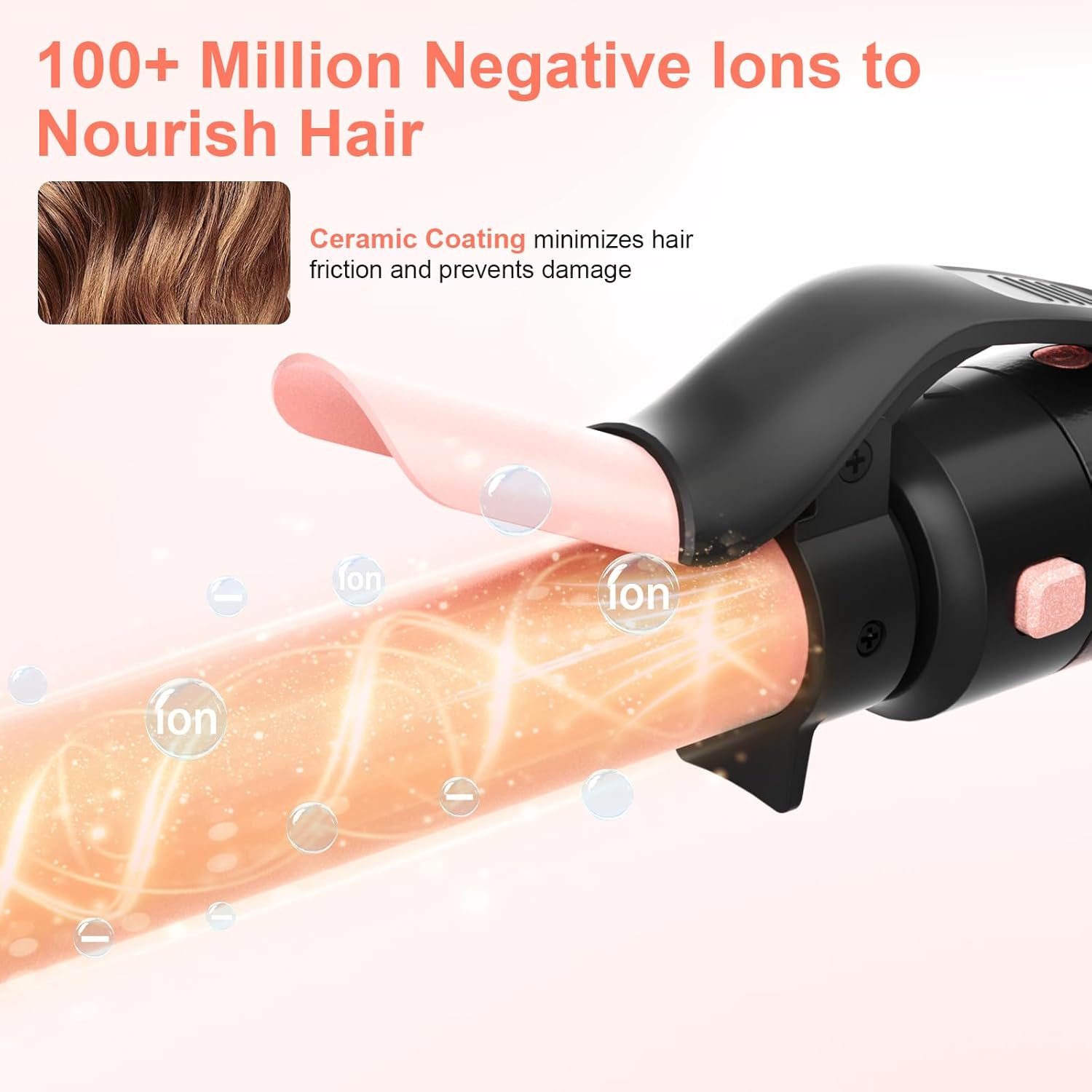 Safe to Use: Afanso Automatic rotating curling iron features Four-layers Ceramic Nourish Technology and the ceramic layer is infused with plant-based hair oil, it will releases micro-steam form, which can keep your hair hydrated and ensure long-lasting curls. Additionally, the barrel releases 100 Million Negative Ions Strengthen your hair moisture and help reduce the friction of hair strands in curly hair. lock in natural moisture and eliminate static electricity and smooth frizz. Keep your hair smooth and shiny