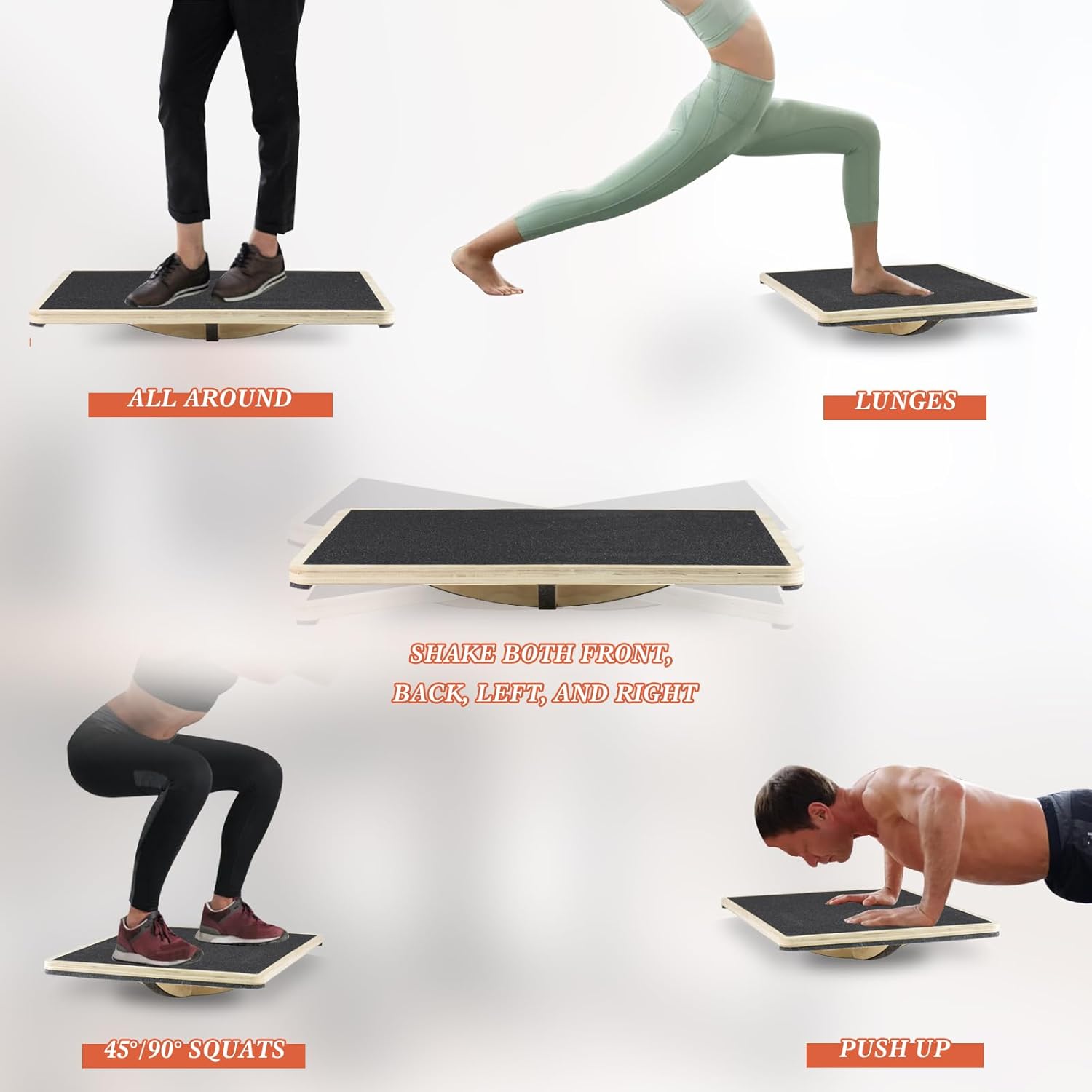 STRENGTH HARDWOOD CONSTRUCTION: Balance board is expertly crafted using high quality hardwood plywood, which is stronger and last longer than others made of birch or pine plywood. Support up to 350lbs allows the wobble board a vigorous workout sessions without any broken.