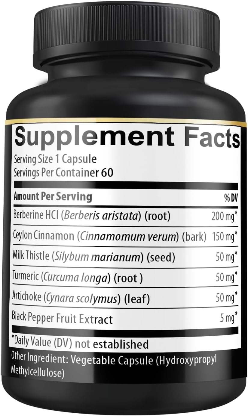 Berberine Supplement with Ceylon Cinnamon, Turmeric, Artichoke, Milk Thistle – Berberine HCl Supplement Pills – 60 Capsules