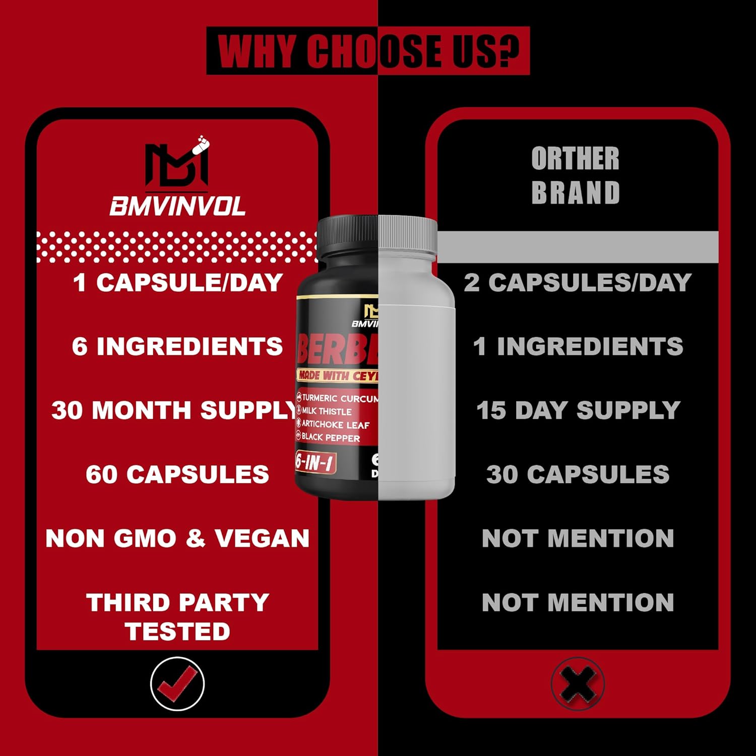 Our Berberine Supplement included Berberine, Ceylon, Milk Thistle, Turmeric, Artichoke Leaf, Black Pepper.