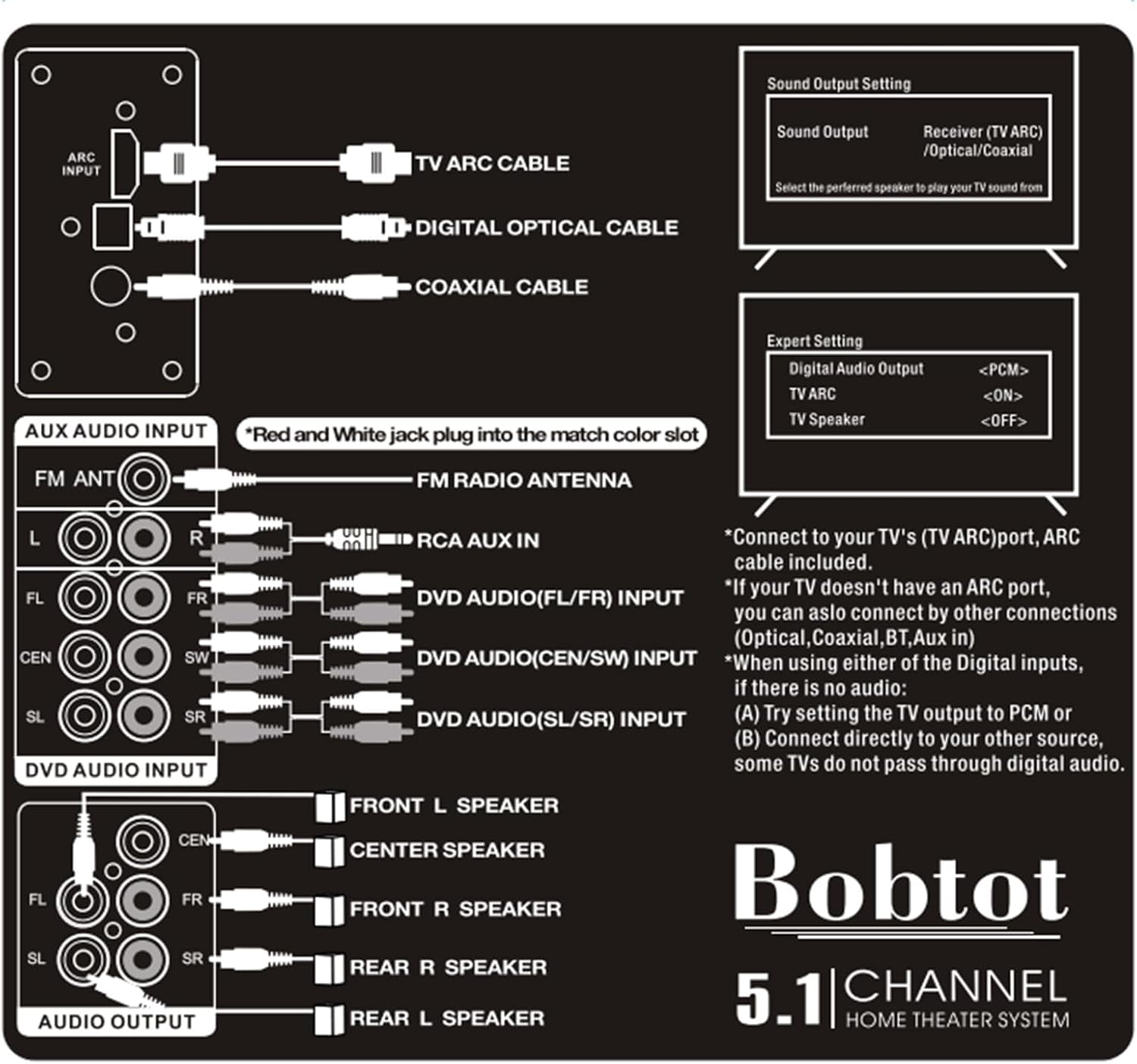 Multiple Application – The home theater sound system support various devices such as TV, phone, game console, DVD, computer, laptop, and projector. These surround sound speakers are compatible with a wide range of smart devices, and support multiple input modes including TV ARC, OPT, COA, AUX, USB, BT, and DVD. To ensure seamless integration, we provide additional cables such as HDMI, Optical, Coaxial, AUX, RCA, and Antenna cables, catering to various applications and fulfilling your connectivity needs. It also supports USB and SD card inputs
