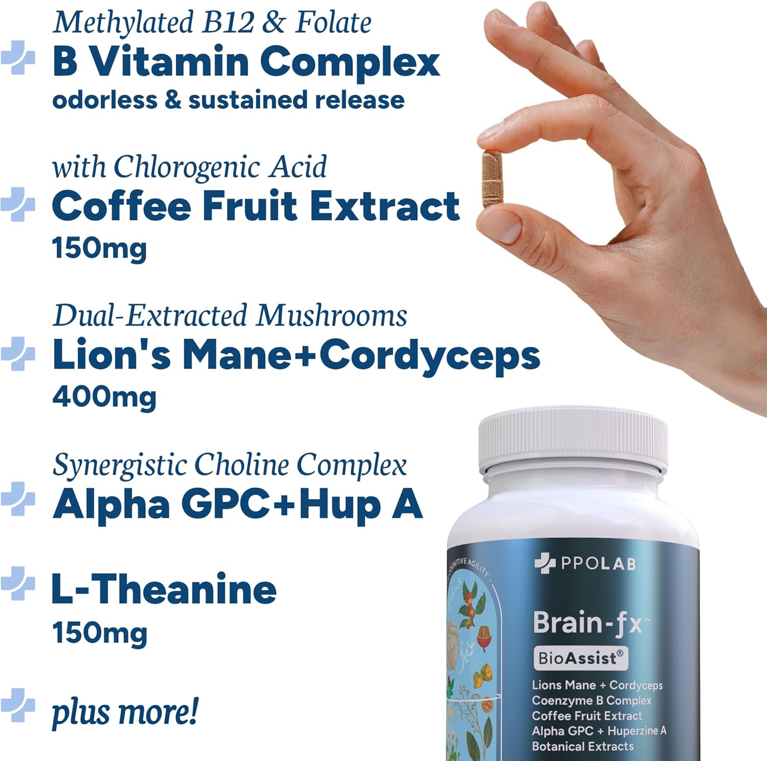Brain-fx™ Nootropic Brain Energy Memory & Focus Supplement, Lions Mane Extract, L Theanine, Methyl B12 5MTHF B Complex, Alpha GPC Choline, Bacopa Monnieri, Ginseng, Cordyceps, Huperzine A BDNF Factor