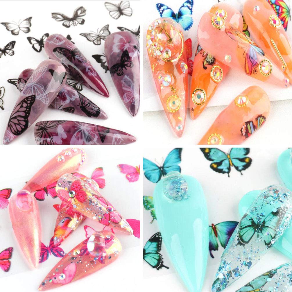 Nail Art Foil Transfer Stickers Fresh Butterfly Flower Transparent Bottom Starry Sky Paper Colorful Nail Transfer Foils Decals for Women Fingernails Toenails Decorations Beauty Design