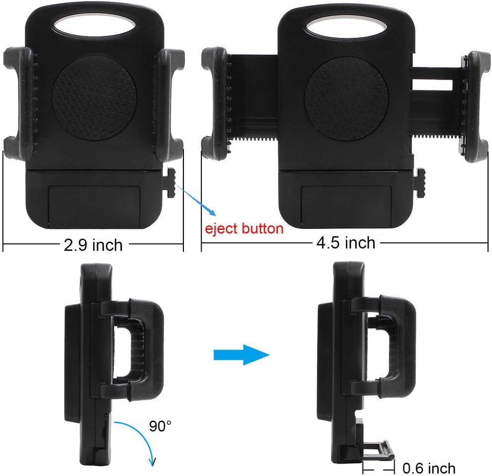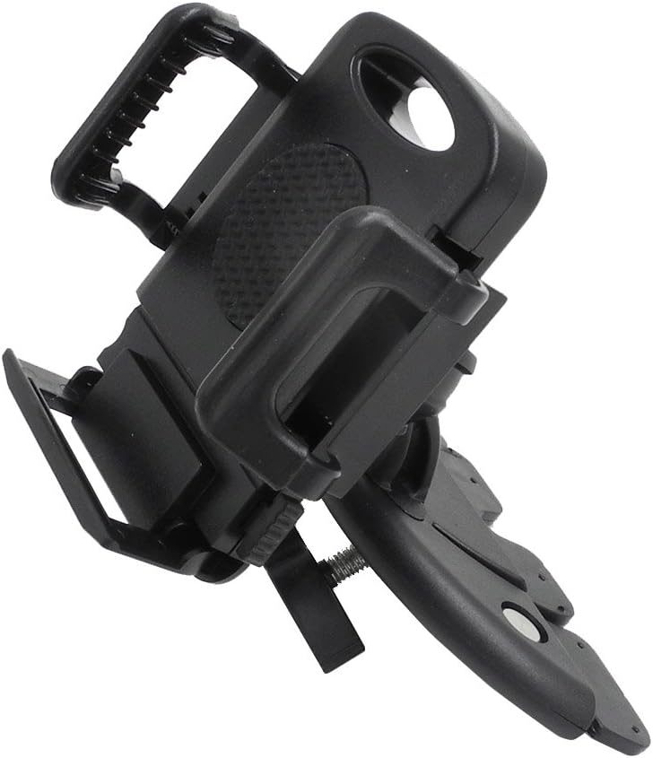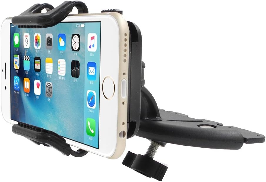 TECHNICAL DETAILS: The plate stretch from 2.9″ – 4.5″ , Fit 2″ – 4″ width Devices (iPhone, Samsung, cell phones, satellite radios, GPS units, MP3 players and more); The part of insert into CD Slot can be adjusted 0.13″ – 0.48″ (thickness), about 0.35″ adjustable; Weight: 135g; Color: Black