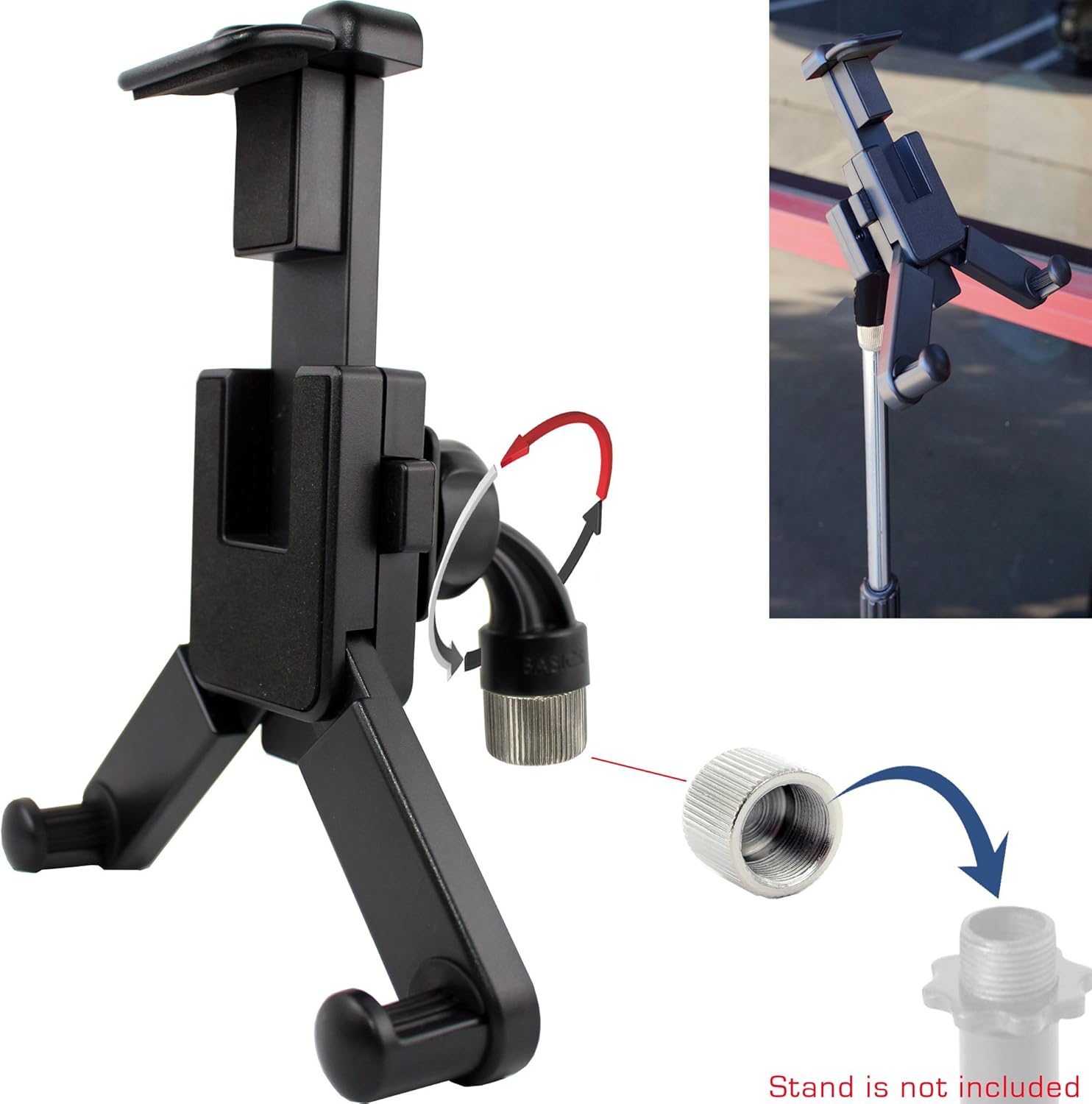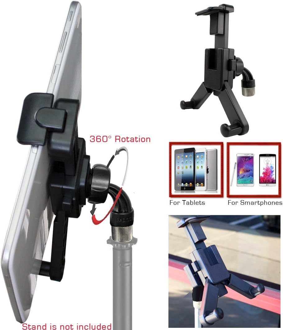 ChargerCity 360° Swivel Tablet Smartphone Mount Holder w/5/8 Tripod Mic Microphone Stand Adapter for iPad Air Mini iPhone Pro Max Galaxy S25 S24 Ultra Tab Slate
