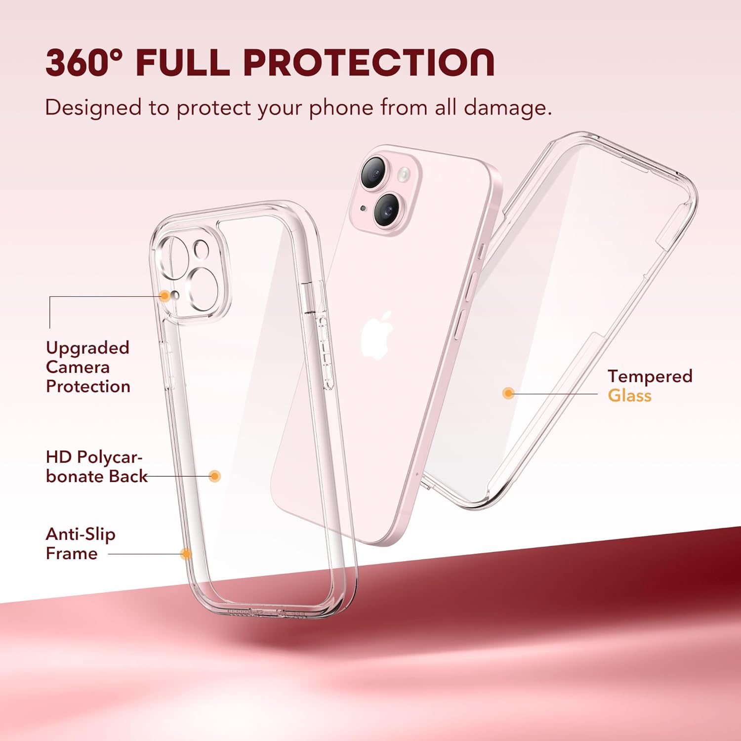 Compatible with iPhone 15 Plus Case, with Built-in 9H Tempered Glass Screen Protector & Upgraded Camera Protection, Dustproof Cover Designed Full Body Rugged Shockproof Phone Case 6.7″, Clear
