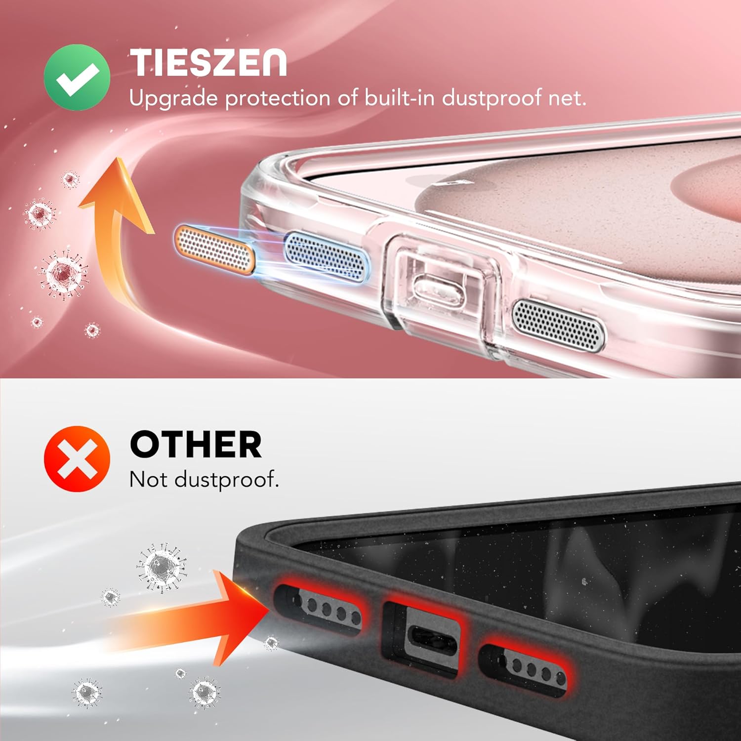 [Compatibility & Easy Installation] TIESZEN’s upgraded integrated design phone case not only effectively blocks dust from the environment but also brings a convenient installation experience. The screen protector perfectly fits your phone, no need to worry about air bubbles during installation.