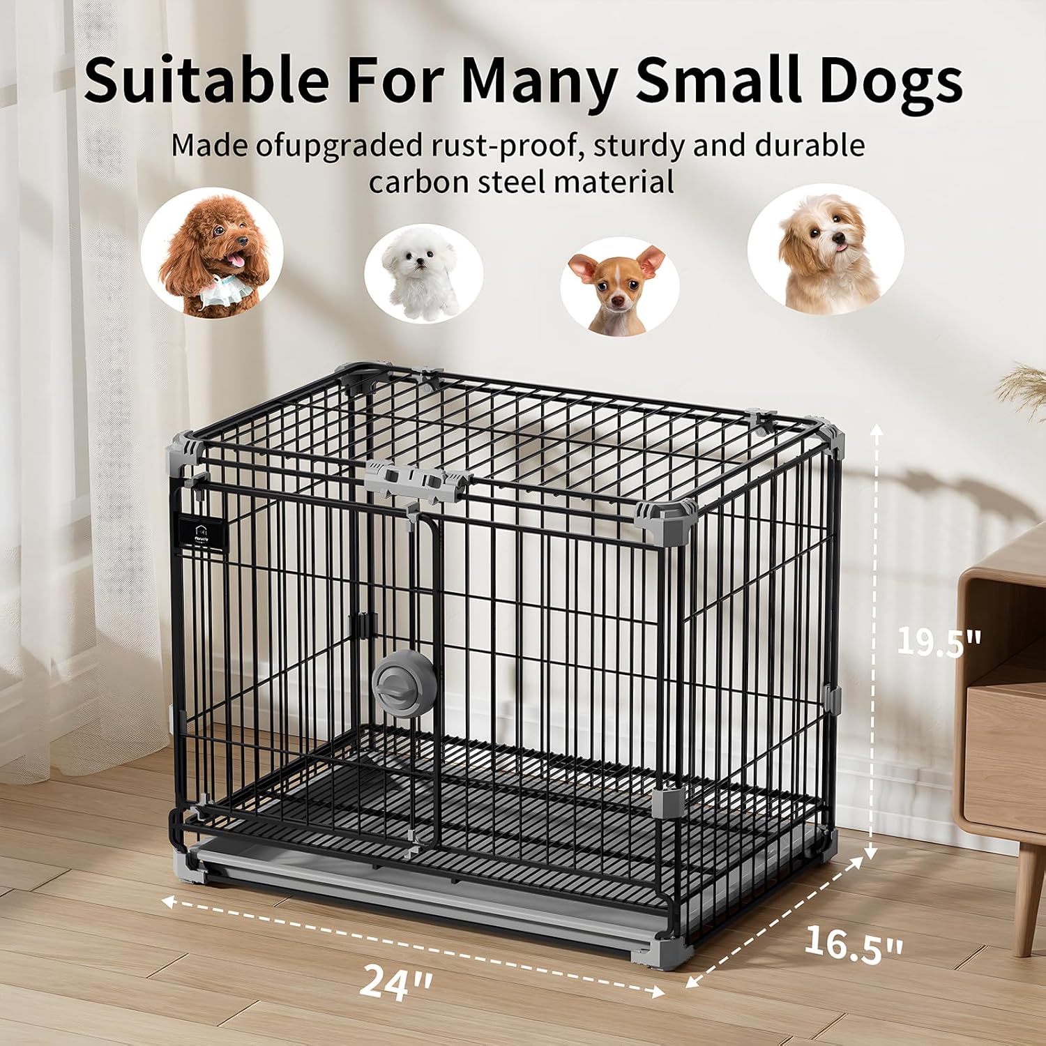 【Sturdy And Durable】: Our 24-inch black small dog crate is made of high-quality metal material, sturdy and durable, not easy to deform unbreakable clasps effectively prevent puppies from escaping. Suitable for pets up to 25lbs