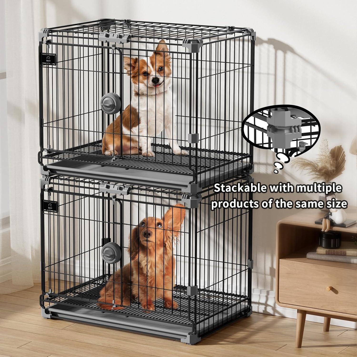 【Compact And Stylish】: Our indoor dog kennel measures 24 inches long * 16.5 inches wide * 19.3 inches high, which is a perfect size for your lovely puppies