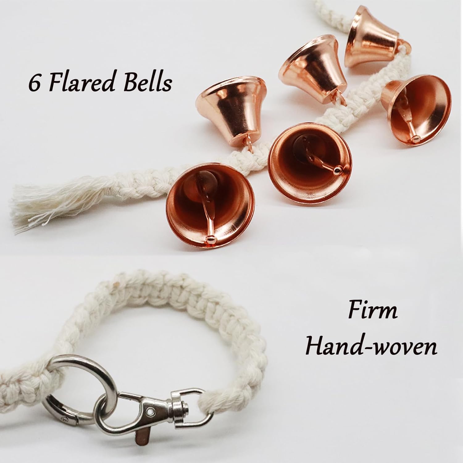 Dog Hanging Doorbells| 6 Dog Potty Training Bells| Adjustable Durable Braided Rope Door Bell for Dogs to Ring to Go Outside(rose gold, Large)