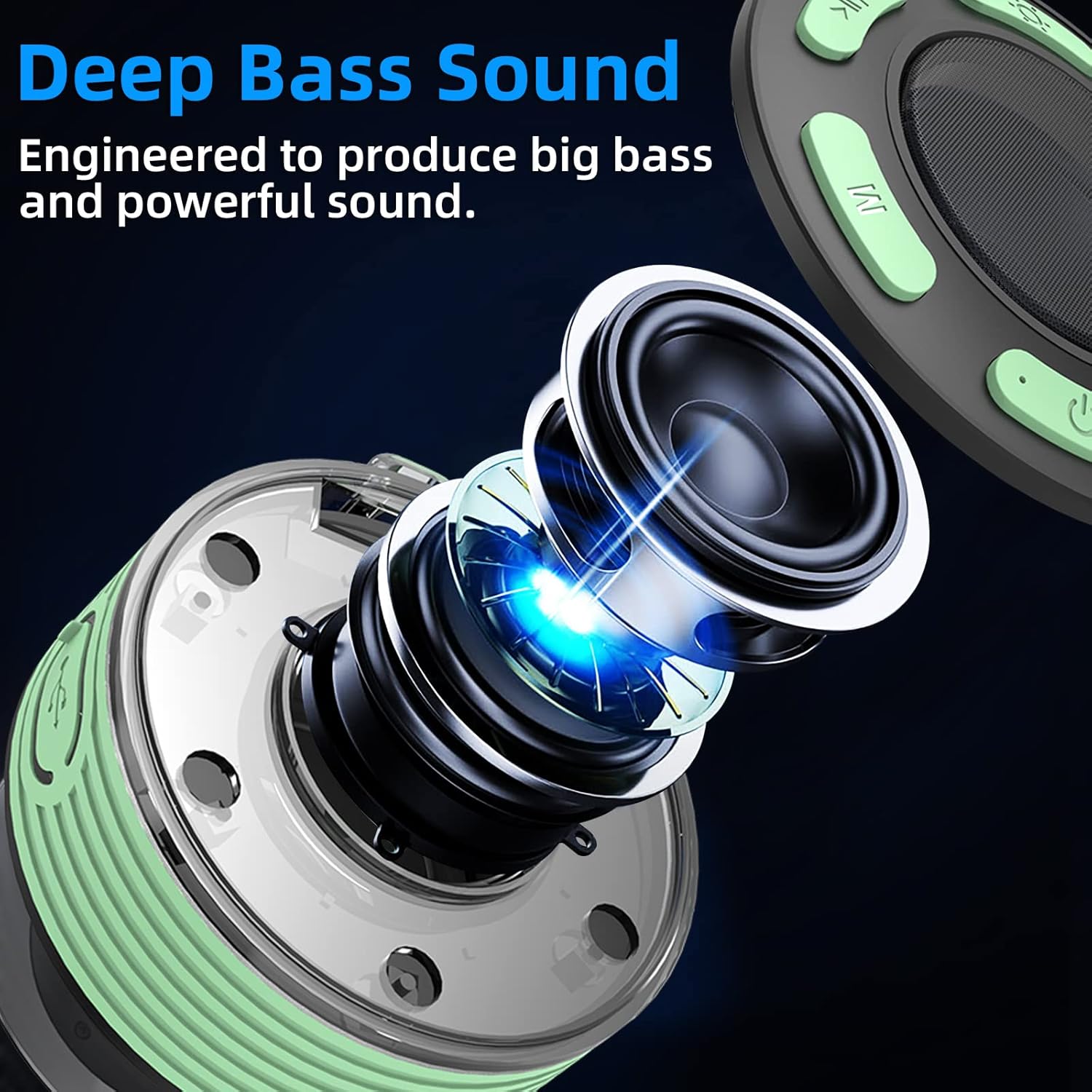Donerton Bluetooth Speaker, IP7 Waterproof Wireless Speaker, Portable Speaker, HD Surround Sound, LED Light Mini Speakers, Dual Stereo Pairing, Built-in Mic, Radio, Green