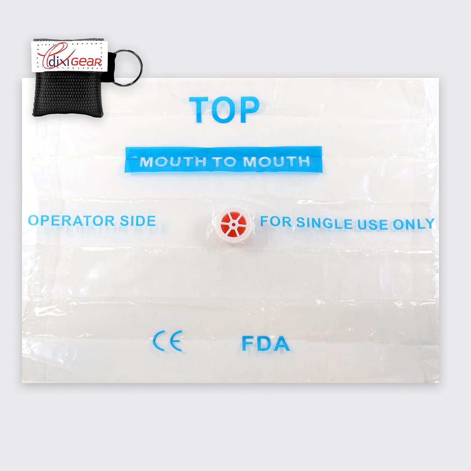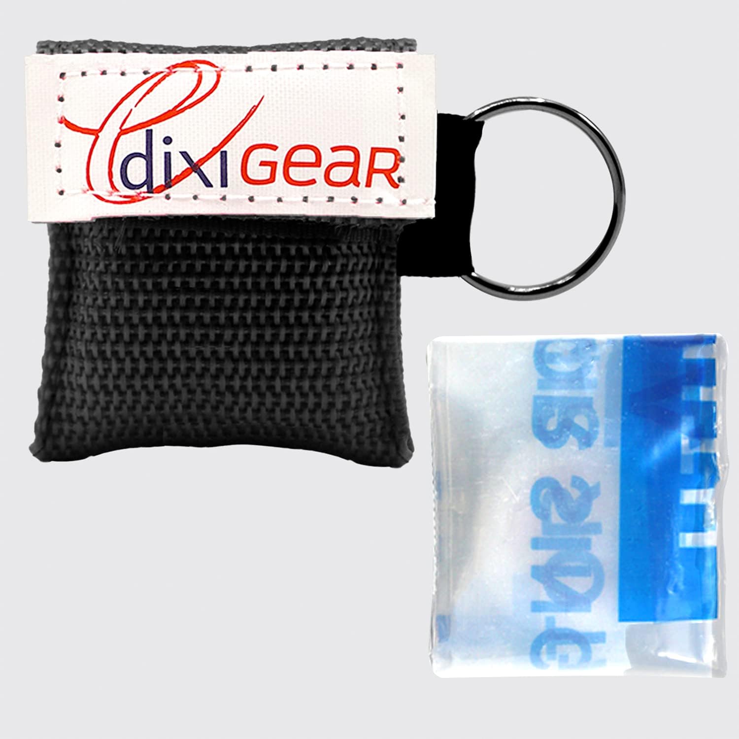 MINI CPR KEYCHAIN POUCH – Sturdy, woven pouch with keychain is designed to be compact and always within reach. It keeps the mask safe, clean and ready to use. The case is a small 2” x 2” square and a slim 1/2” thick. The strong keyring can be used to attach the mask to your keys, on a backpack, attached to a belt loop or any convenient place to keep the within reach.