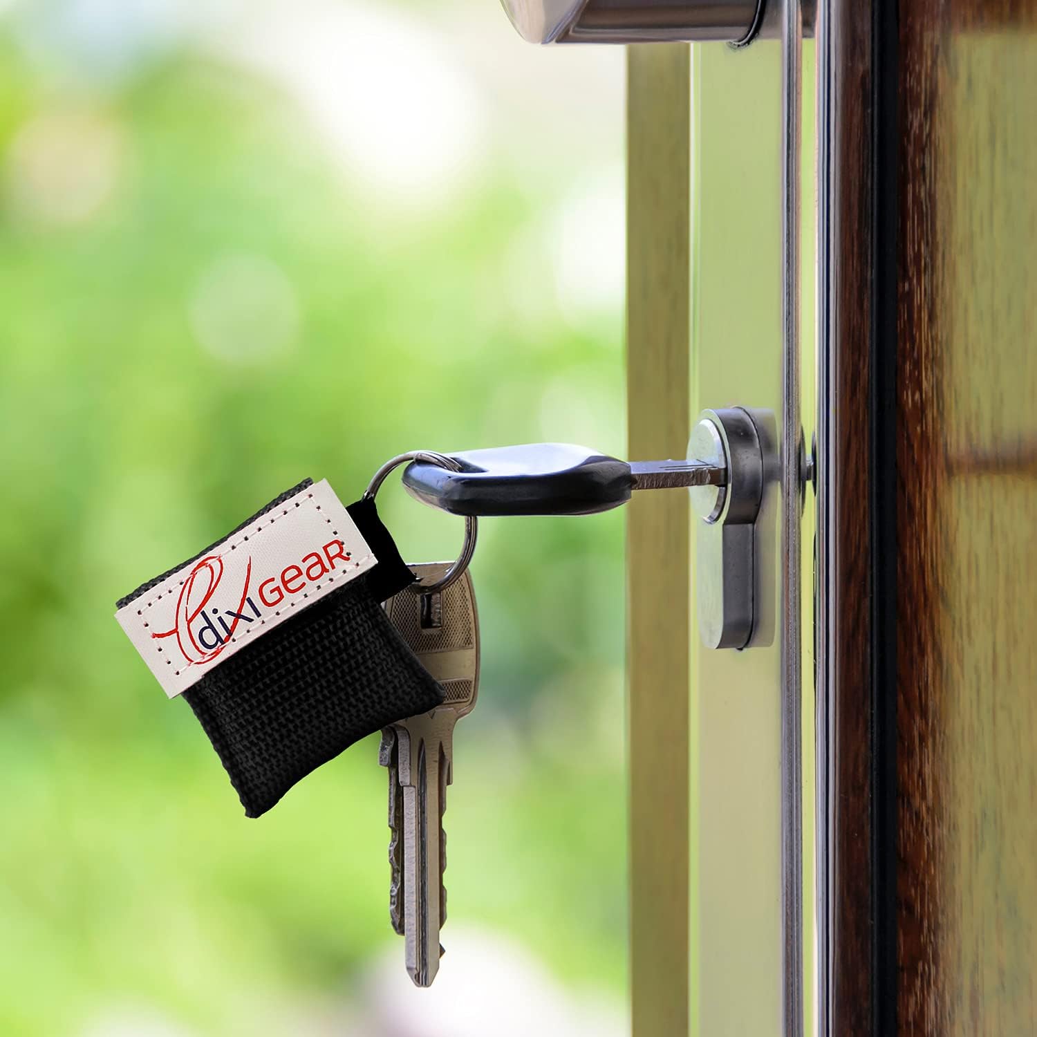 Sturdy, woven pouch with keychain is designed to be compact and always within reach. It keeps the mask safe, clean and ready to use.