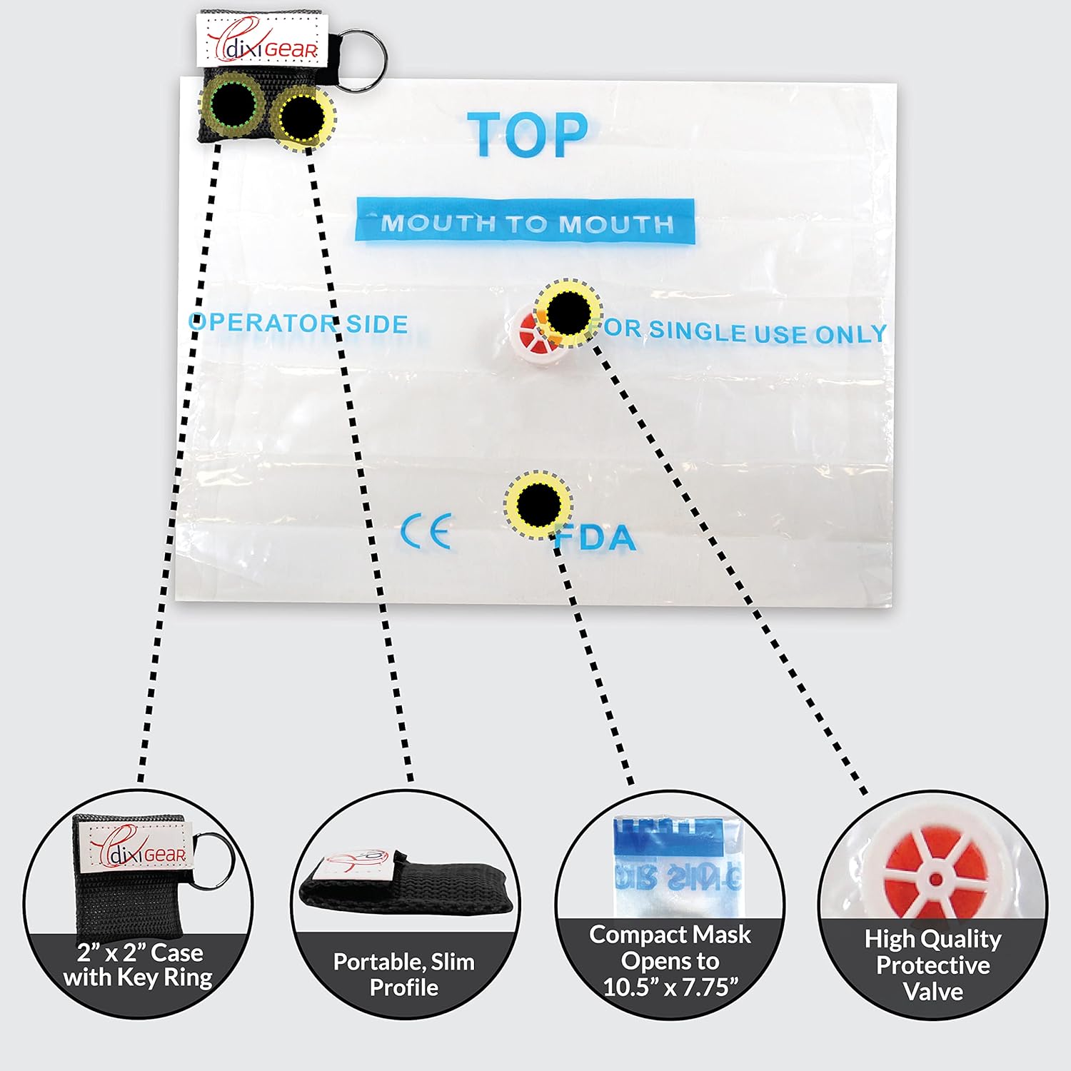 Ever Ready First Aid CPR Mask Key Chain, 5 Count – Black