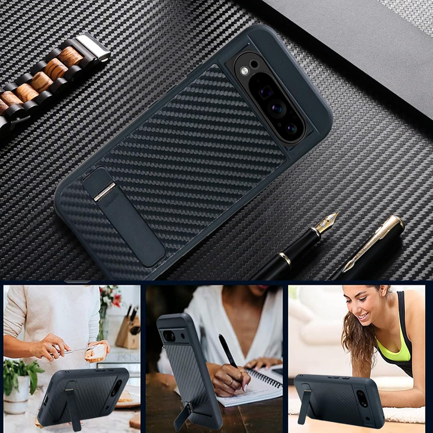 ✅[Design Concept] This case only designed for Google Pixel 9 Pro XL, consists of hard PC, soft TPU and carbon fiber texture leather, built-in flat metal stand & strong magnetic compatible with magsafe. Ingeniously designed to provide hands-free, multi-angle viewing while allowing you to charge your Phone wirelessly uninterrupted. A case that combines aesthetics, performance, and convenience.