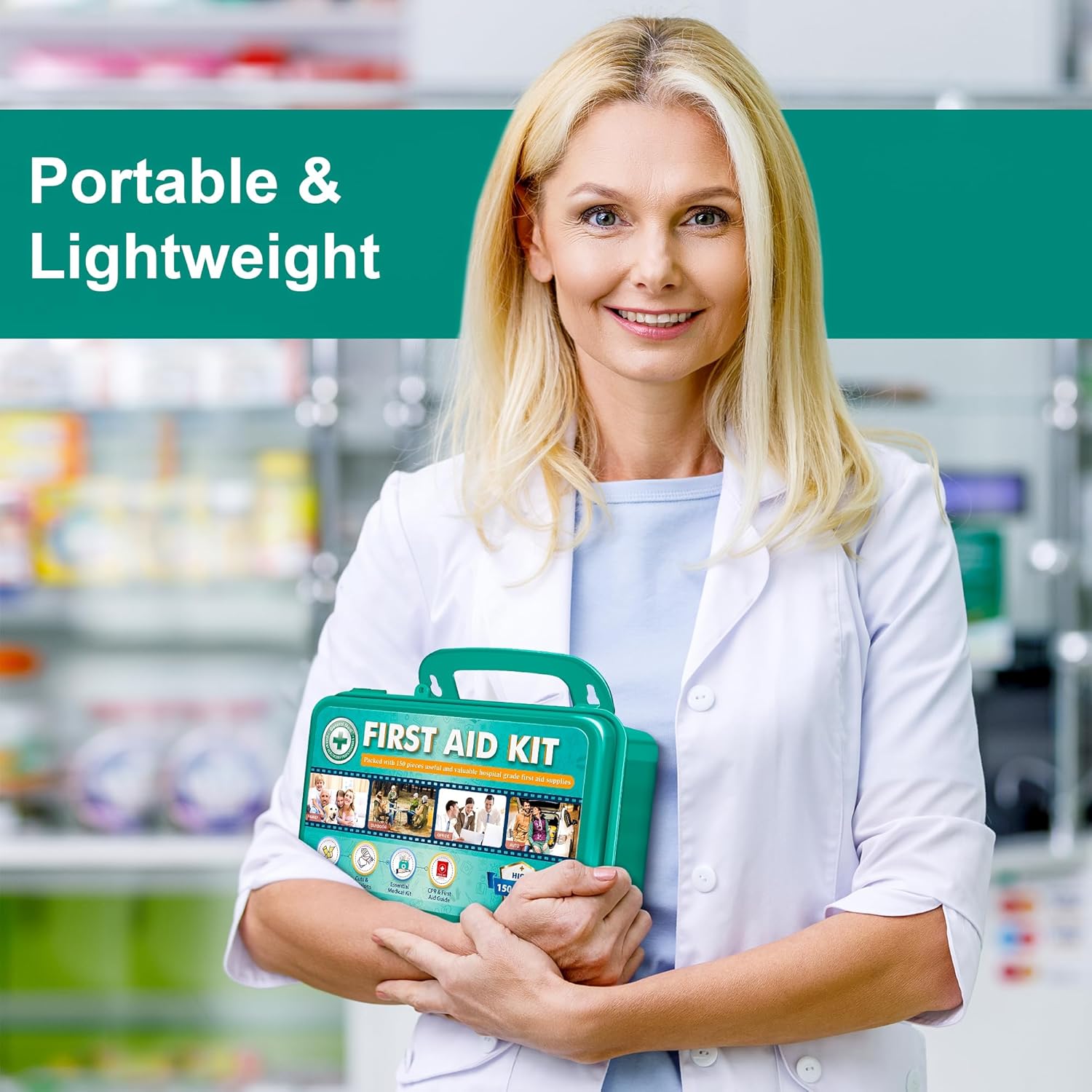 Quality – The box is hard case, compact and easy to carry, holds all the basic first aid supplies (150 pieces total). It is well-organized and there is still additional space to add more items when necessary.