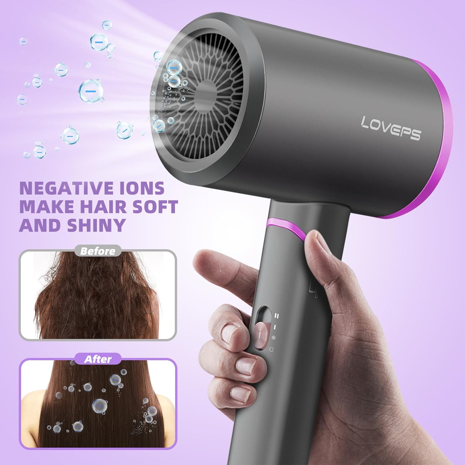 Hair Blow Dryer with Diffuser, 1800W Ionic Hair Blow Dryer, Foldable Handle Travel Hair Dryer, Constant Temperature Hair Care Without Hair Damage, Crimson Purple
