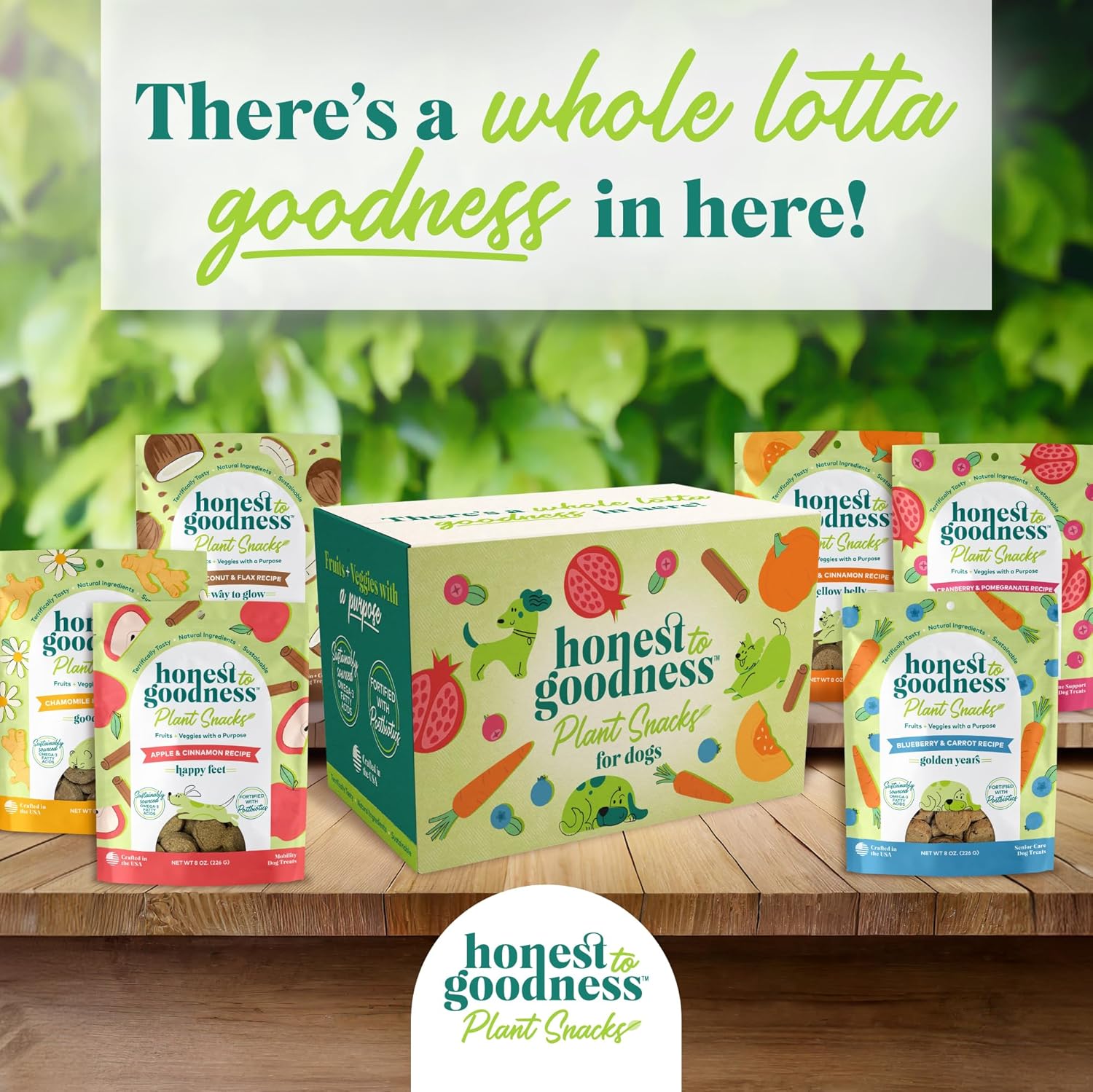 Honest to Goodness Plant Snacks Dog Treats, Enriched with Omega 3s & Postbiotics, 8oz Variety Pack, 6 Bags