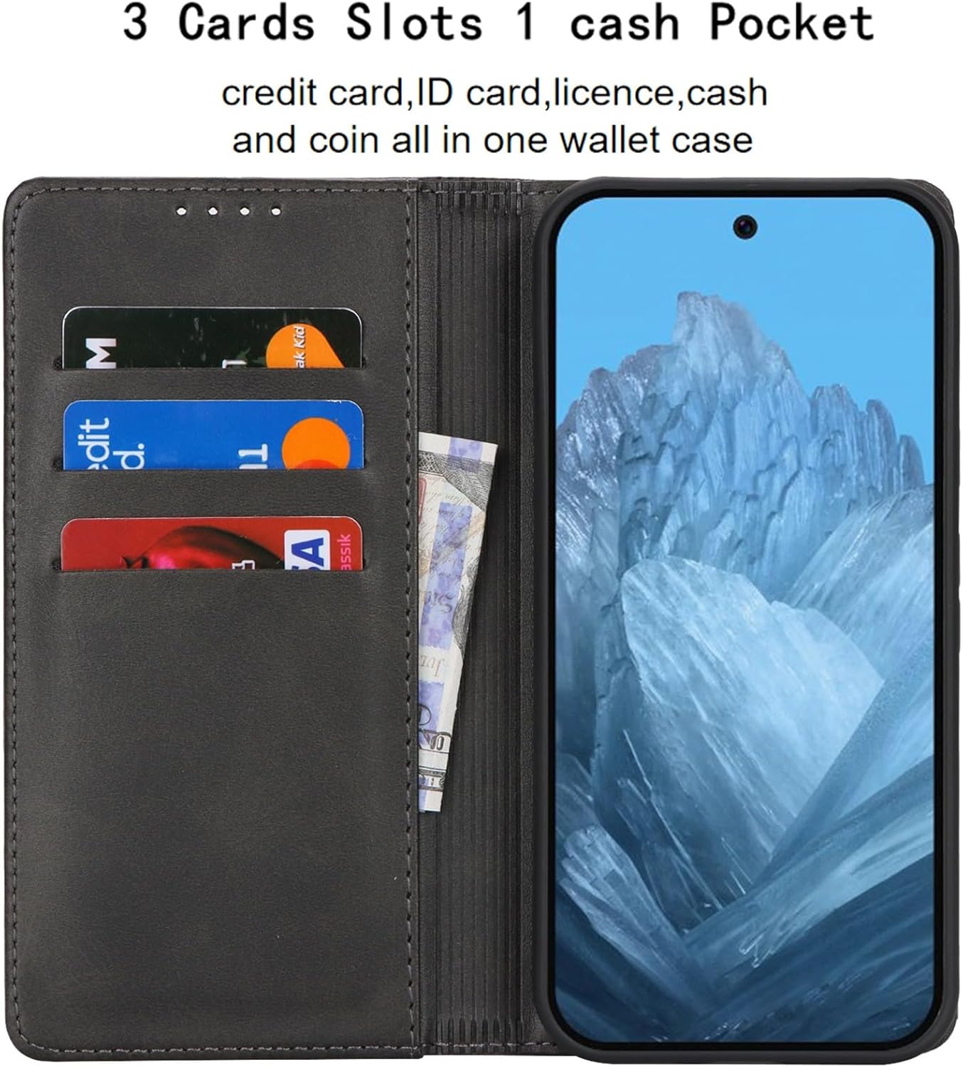 Jaorty fit for Google Pixel 9/9 Pro Wallet Case,Premium PU Leather Flip Folio Case with Card Slot,Stand Holder,Magnetic Closure TPU Shockproof Interior Protective Case for Pixel 9/9 Pro,Black