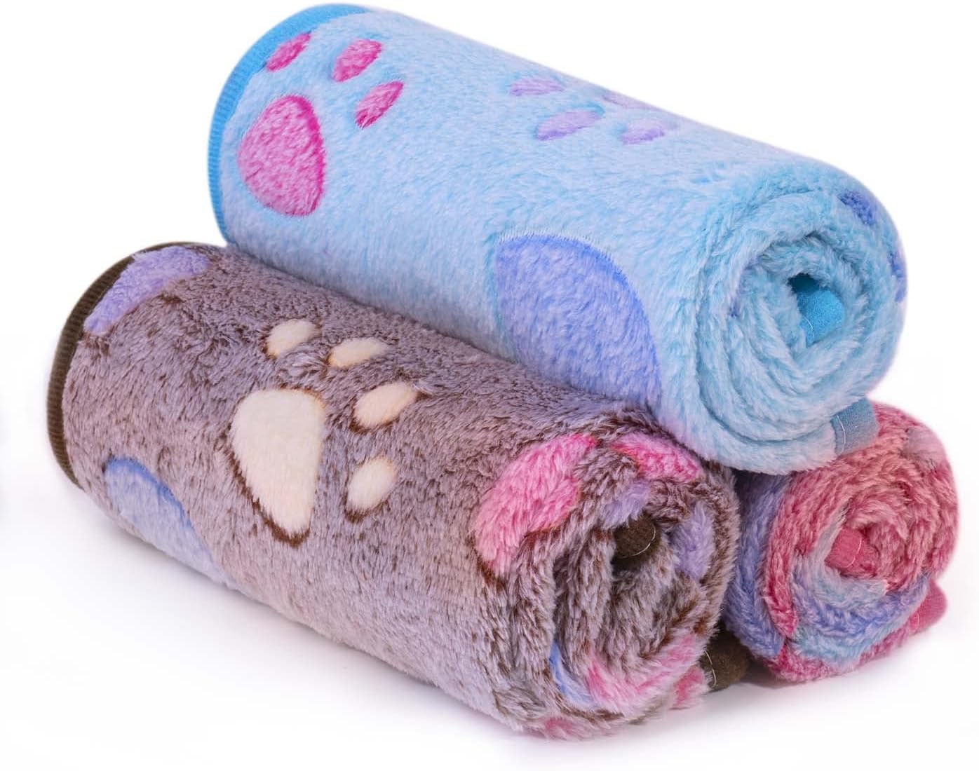 1 Pack 3 Blankets: Pink, Light-blue, Brown 3 different colors in one pack, heart and paw printed super cute dog blankets for pets