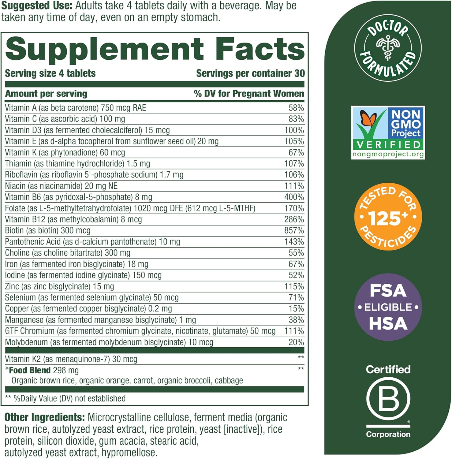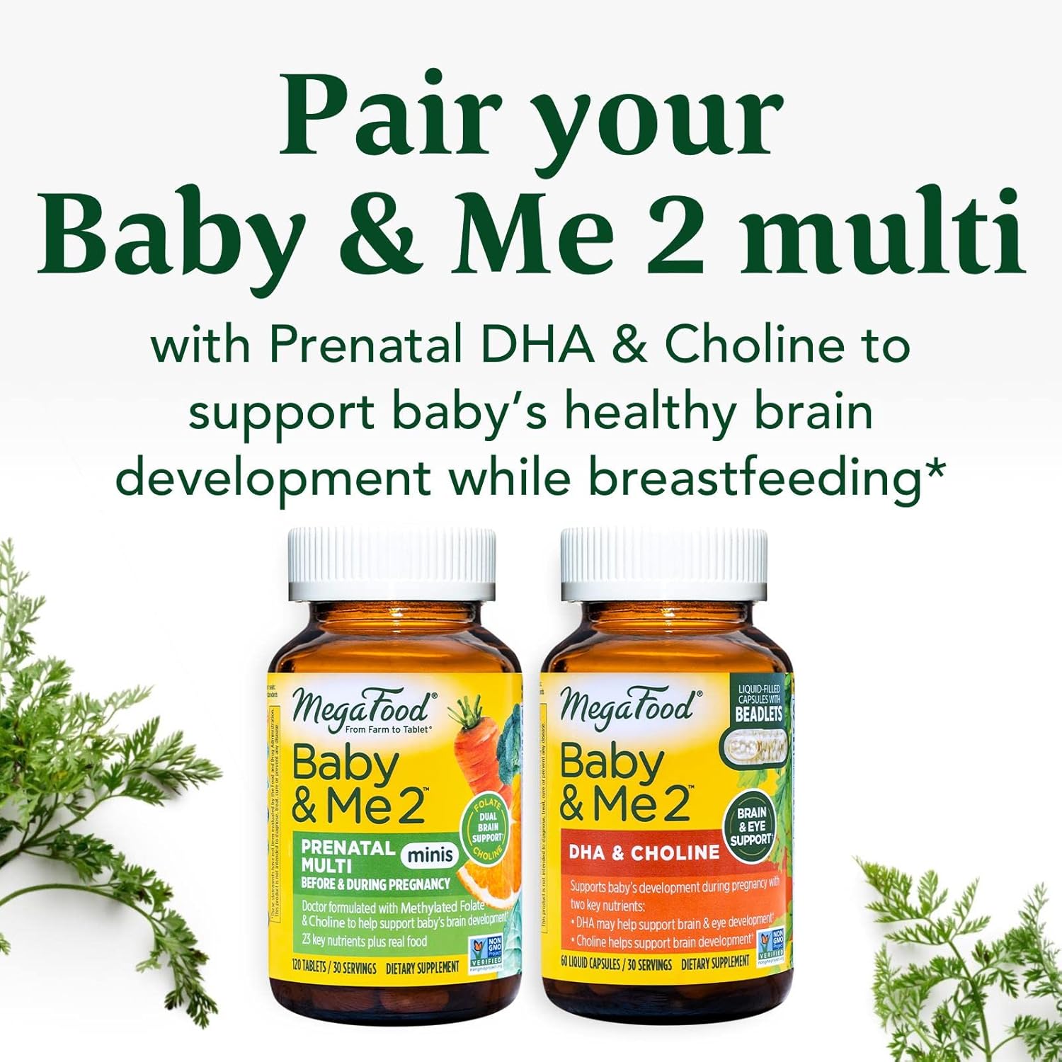 MegaFood Baby & Me 2 Prenatal Vitamin & Minerals – Vitamins for Women – with Folate (Folic Acid Natural Form), Choline, Iron, Iodine, Vitamin C, Vitamin D and More – 120 Mini Tabs (30 Servings)