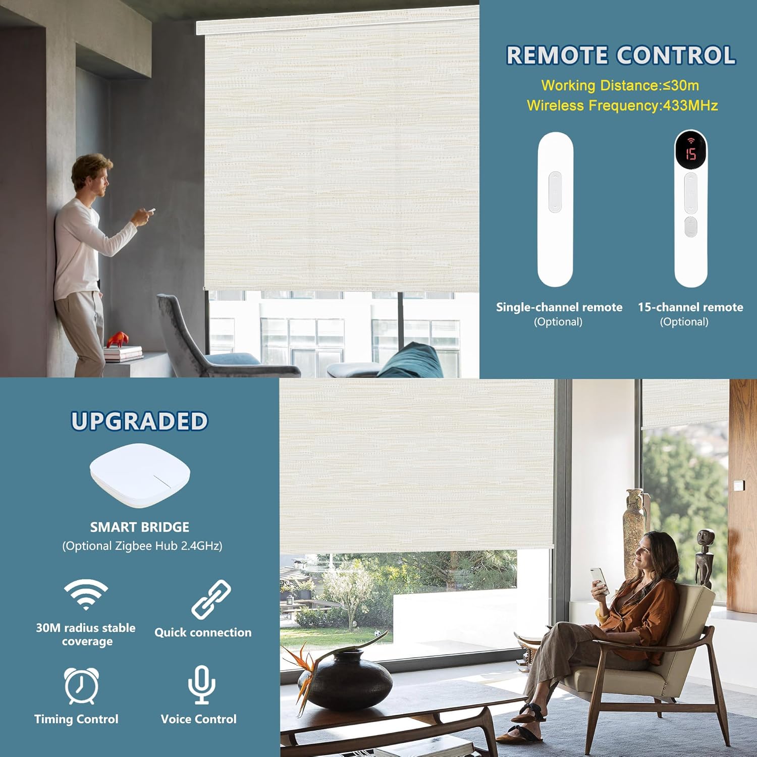 [Brignox Smart Blinds]an innovative home product that allows you to easily control the opening and closing of all house curtains with a remote control featuring advanced technology (15 channels). whether you are lying in bed, sitting on the sofa, or busy with household chores, you can easily change the curtain status with a simple button press, enabling a free and convenient lifestyle.