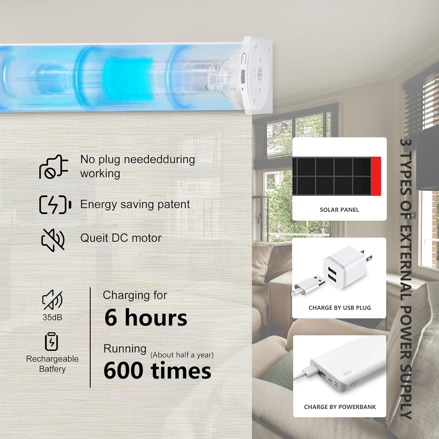 to better meet user needs and consider the concept of environmental protection and energy saving, this curtain can also be equipped with a solar panel. by absorbing solar energy, the solar panel provides lasting power to the curtain, eliminating the hassle of frequent battery replacements and charging, while also reducing reliance on traditional energy sources, achieving green and environmentally friendly electric curtain control.