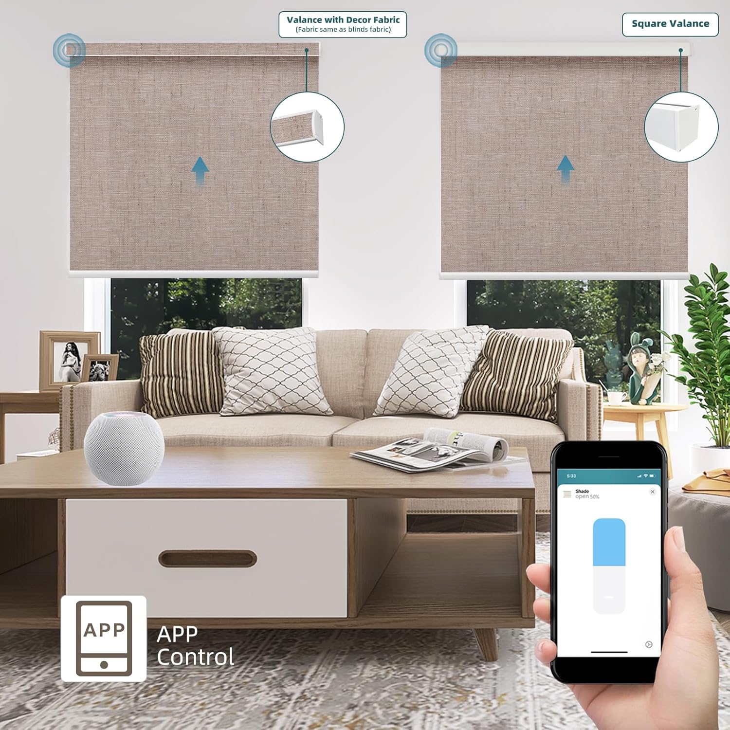 Motorized Shades 70% Blackout Smart Blinds Work with HomeKit Alexa Google Home Electric Blinds with Remote Control for Windows Shade for Smart Home Living Room Customize Size, Linen Caramel