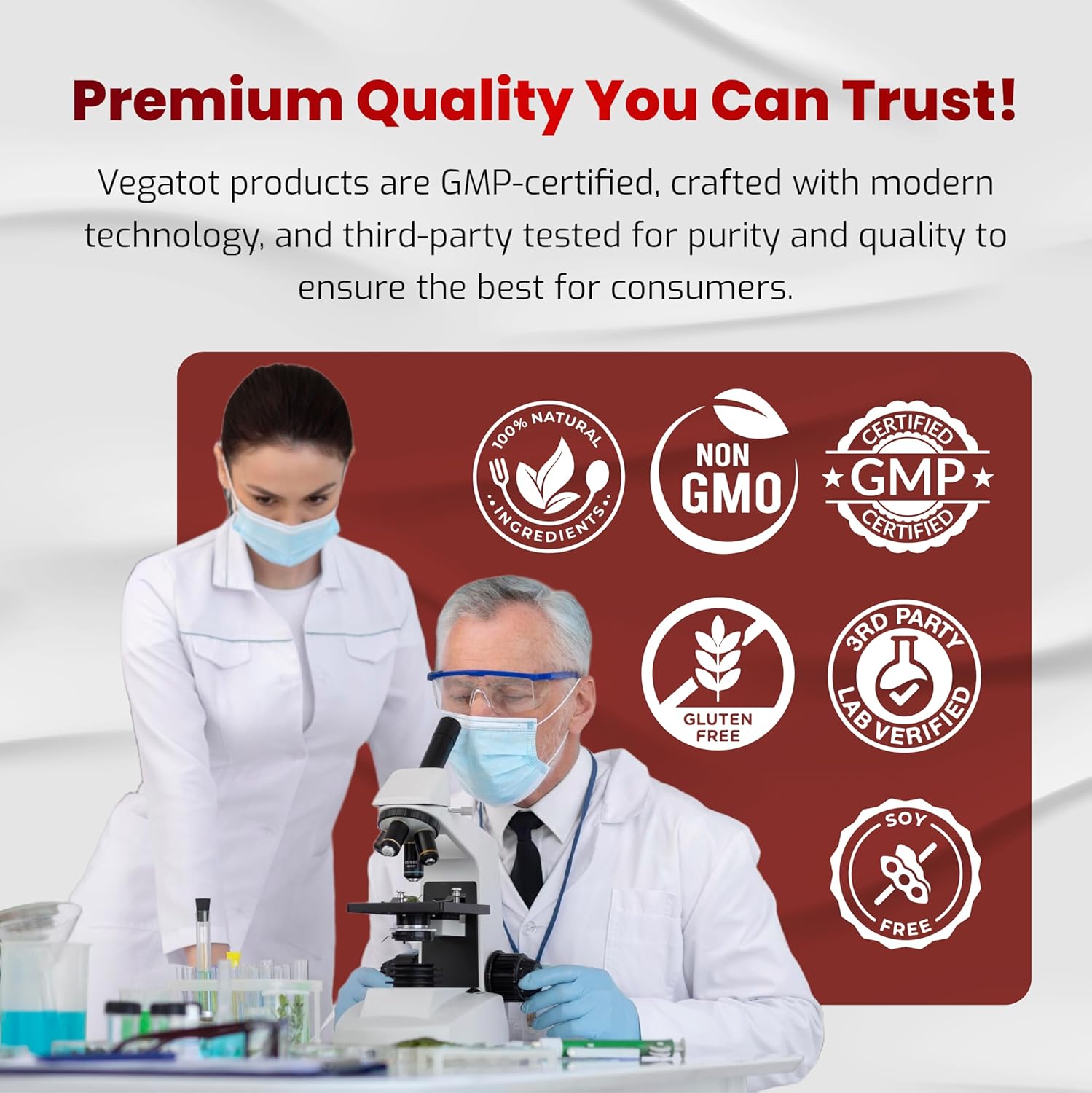 ️ PURE INGREDIENTS, PURE PEACE OF MIND: Vegatot is committed to providing pure and high-quality supplements. Our ingredients are tested strictly by 3rd party labs to ensure purity and safety. They are vegan-friendly and free from additives, preservatives, and common allergens such as gluten, wheat, dairy, soy, sugar, and yeast. Therefore, you can feel good about what you’re putting into your body.