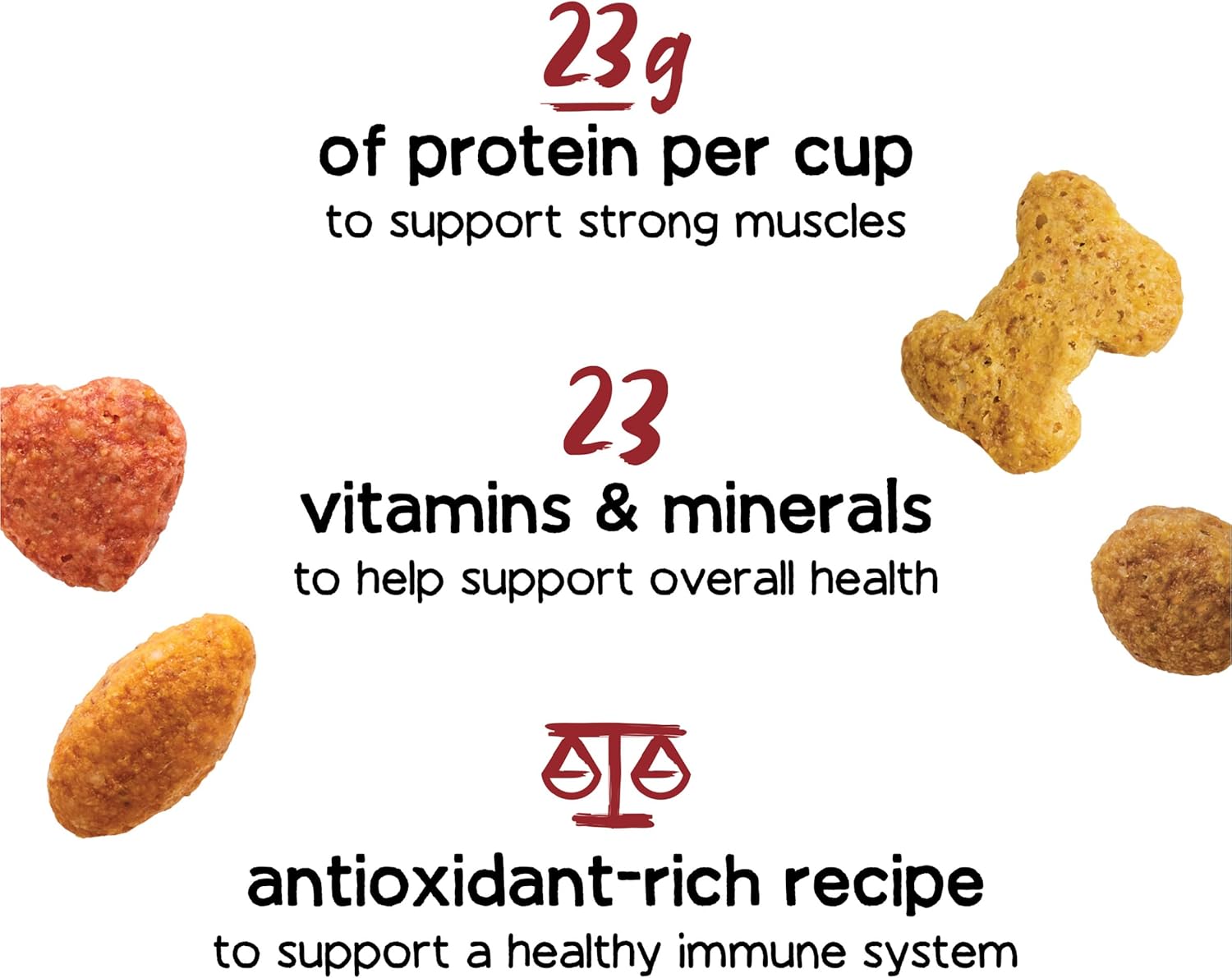 This dog food with real meat contains 23g of protein per cup to help maintain dog muscle health