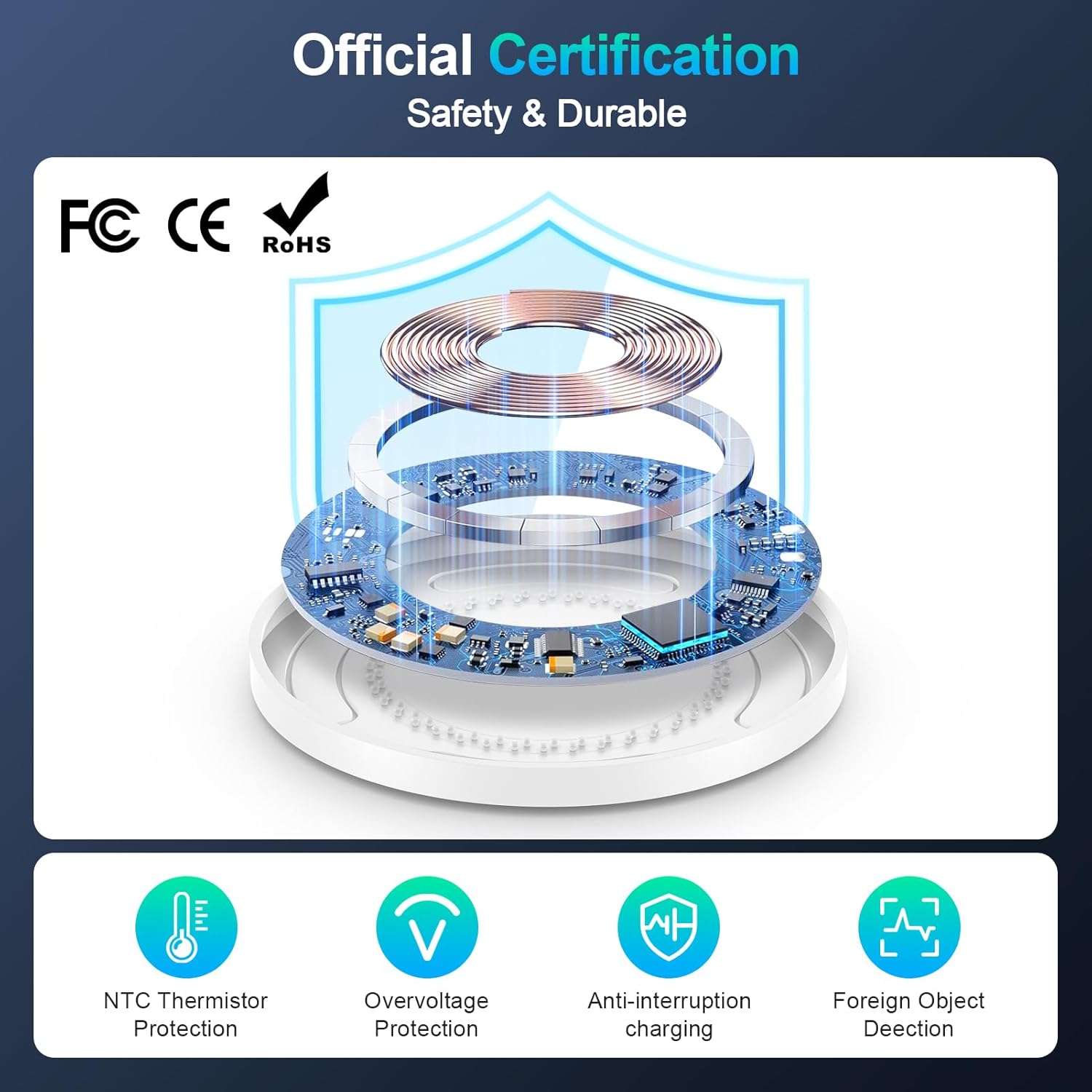 Samsung wireless charging pad passed CE,FCC,and RoHS official authorization.you can rest assured that your device is protected during charging.