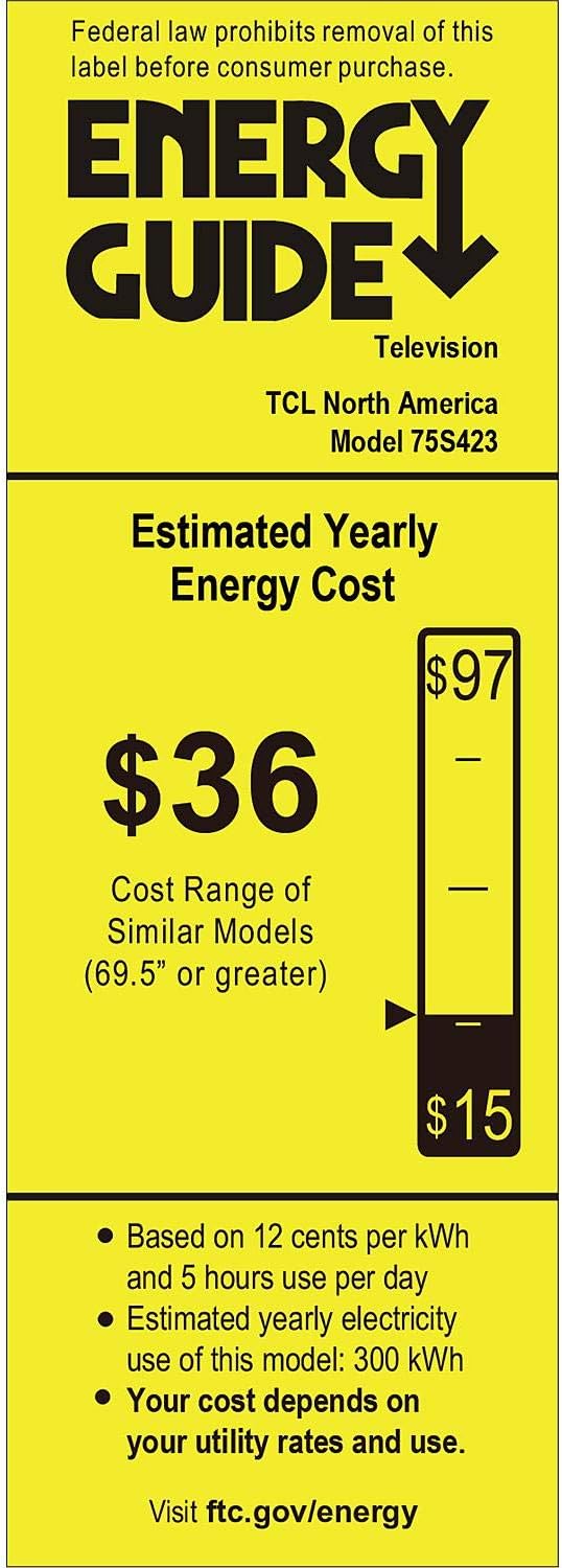TCL 75″ Class (74.5″ Diag.) 4K UHD LED LCD TV (75S423)