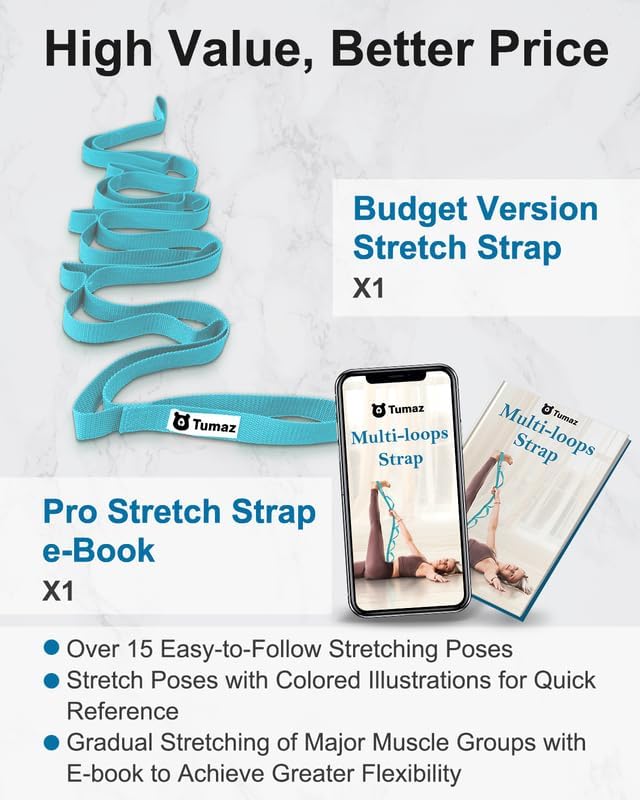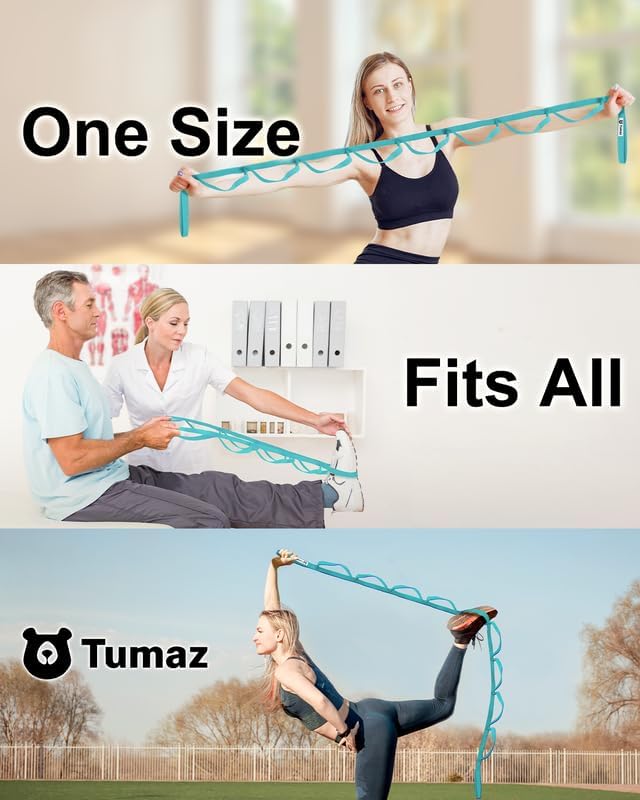 Tumaz Stretching Strap – 10 Loops & Non-Elastic Yoga Strap – The Perfect Home Workout Stretch Strap for Physical Therapy, Yoga, Pilates, Flexibility – [Extra Thick, Durable, Soft]