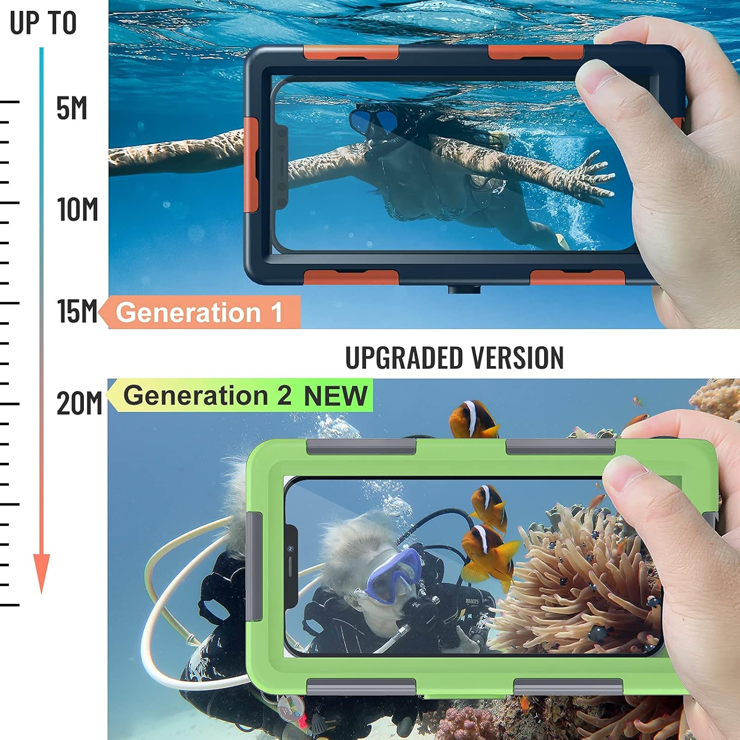 Upgrade Diving Swimming Waterproof Protective Case, Outdoor Universal Snorkeling Surfing Professional Underwater Housing for iPhone Galaxy Huawei OnePlus LG Motorola Google Series Phones