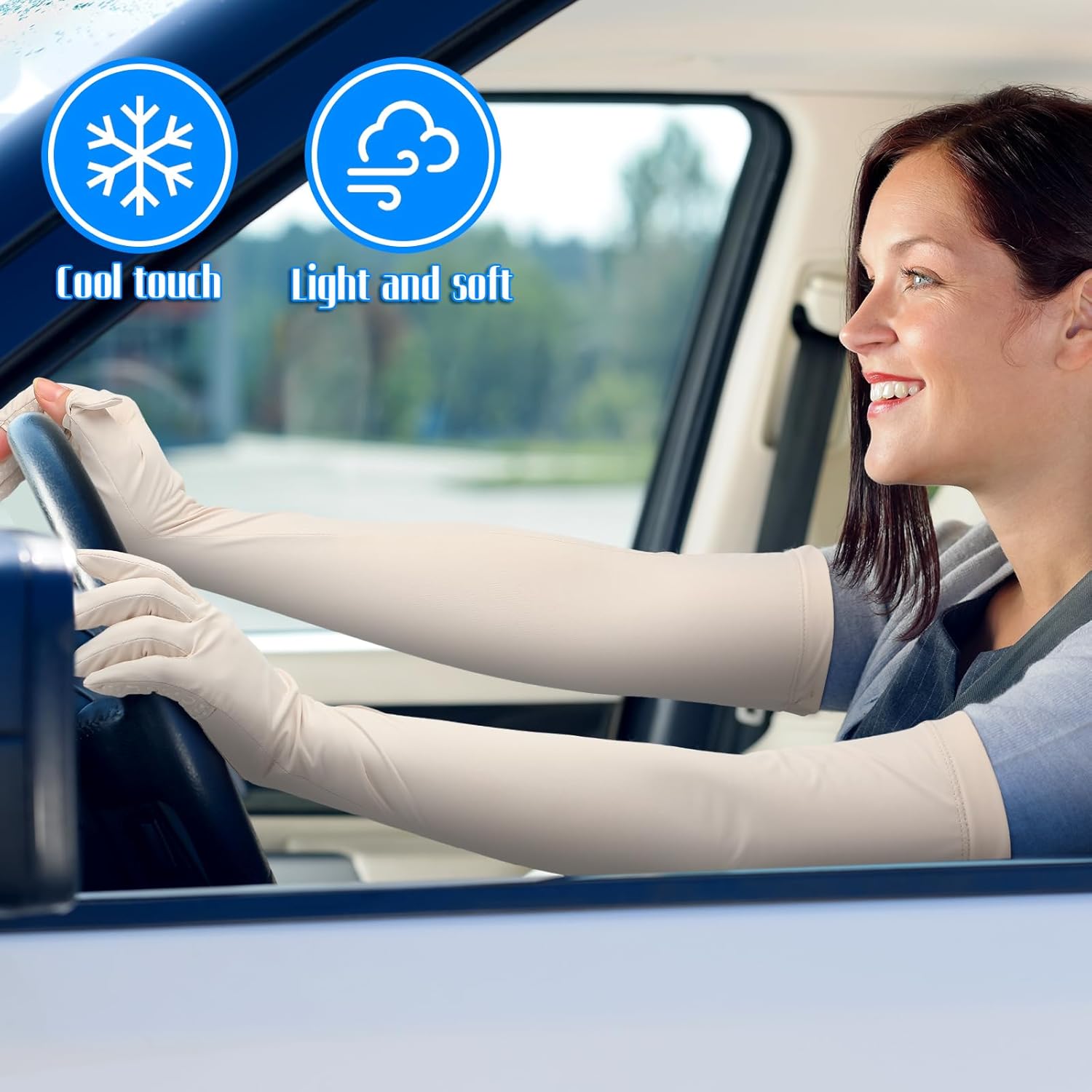 Yahenda 2 Pairs UV Long Sun Protection Driving Gloves UPF 50+ Touchscreen Arm Adjustable Women Sunscreen Gloves for Outdoor