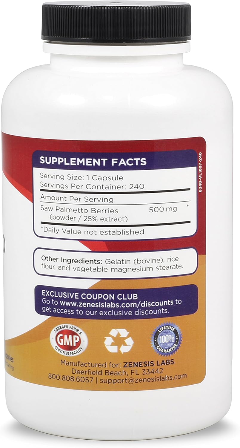 Zenesis Labs Saw Palmetto Extract – 240 Capsules – 500mg/capsule – 200% More Capsules Than Most Competitors